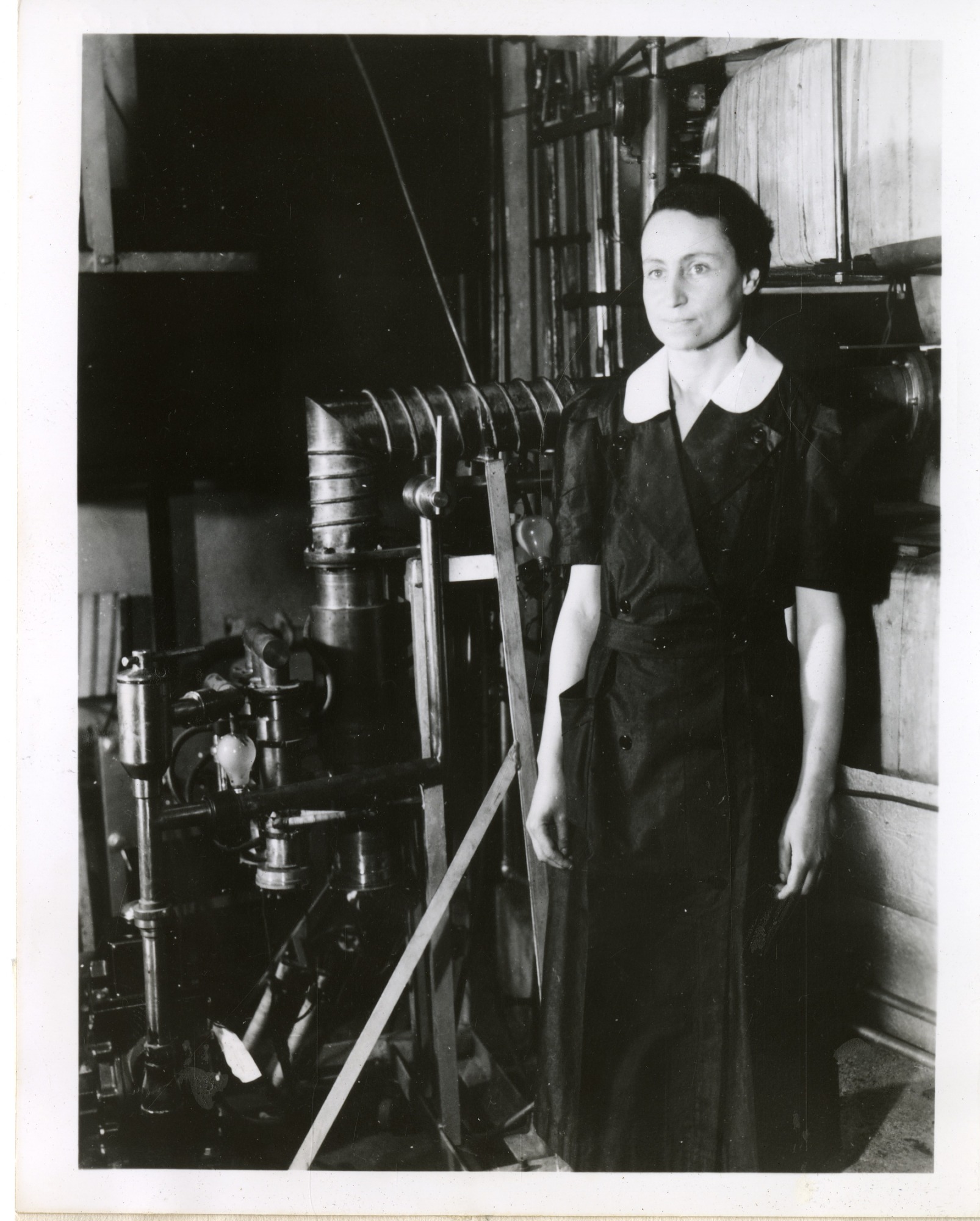 Austrian-born physicist Herta R. Leng (1903-1997) fled Austria in 1939 and eventually immigrated to the United States in 1940. This photograph was taken when she was awarded an American Association of University Women International Fellowship. With that fellowship support, she continued her research on radioactivity at Purdue University and later joined the faculty at Rensselaer Polytechnic Institute (RPI), where she taught until 1968. Every year, RPI honors Leng with the Herta Leng Memorial Lecture series.