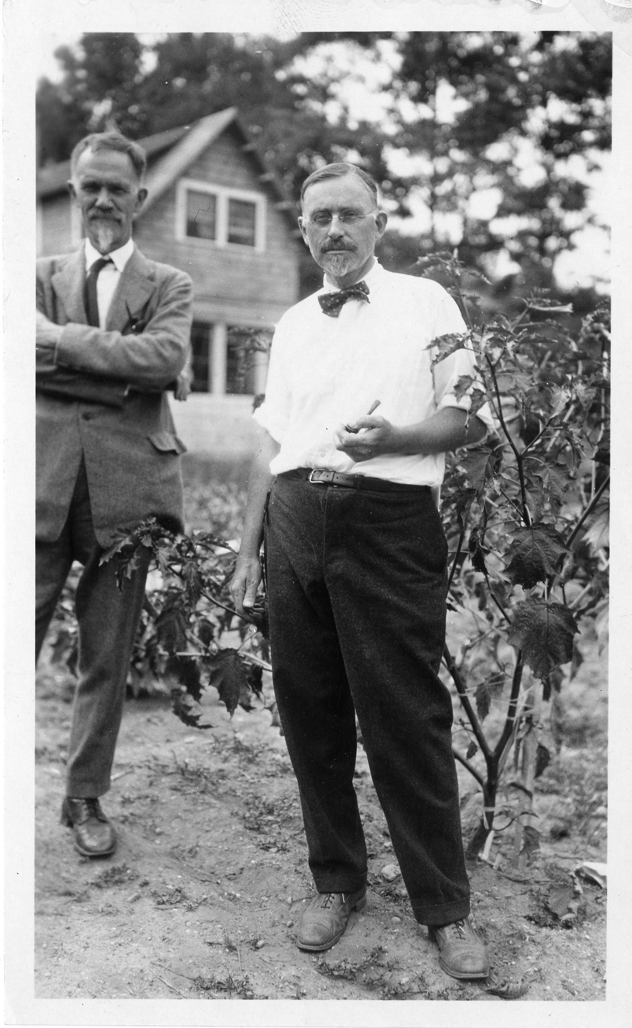 Botanist and geneticist Albert Francis Blakeslee (1874-1954) had begun to conduct research at Cold Spring Harbor Laboratory in 1915, while Charles Benedict Davenport (1866-1944) was its Director; when Davenport retired in 1934, then Blakeslee headed the laboratory. They are shown standing in one of the genetic research fields.