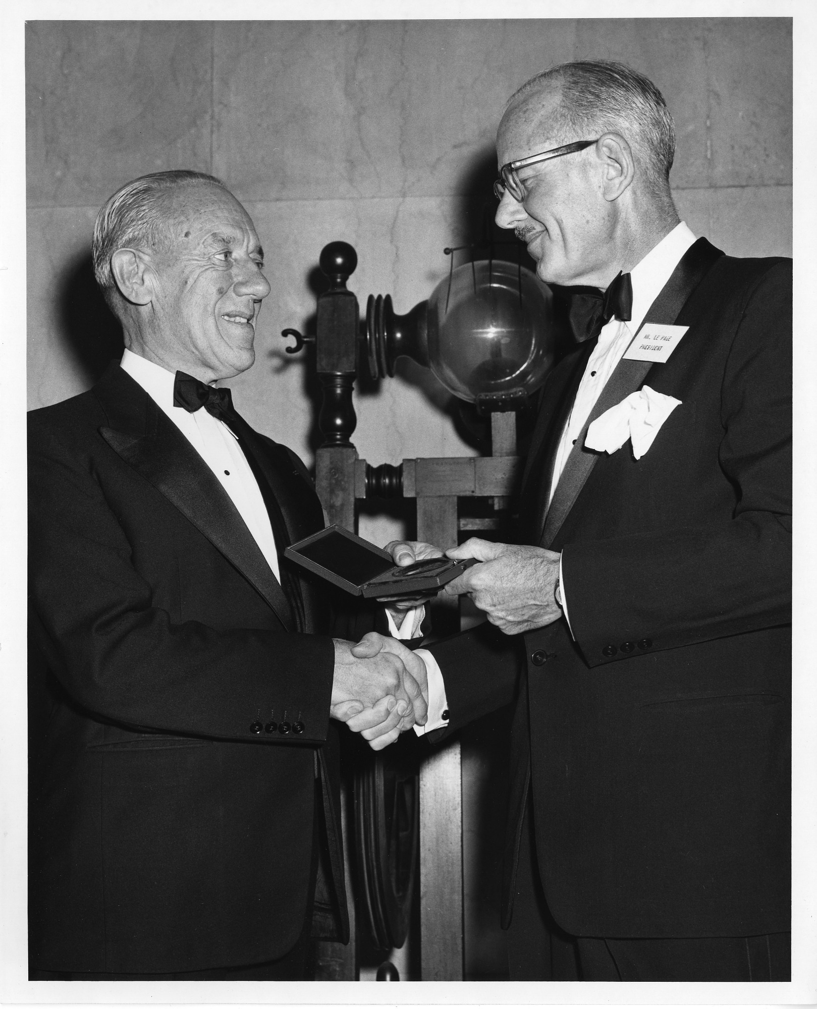 Detlev Wulf Bronk (1897-1975) was President of Johns Hopkins University, 1949-1953, President of National Academy of Sciences, 1950-1962, and President of Rockefeller University, 1953-1968. He is shown receiving the Franklin Medal at the Franklin Institute.