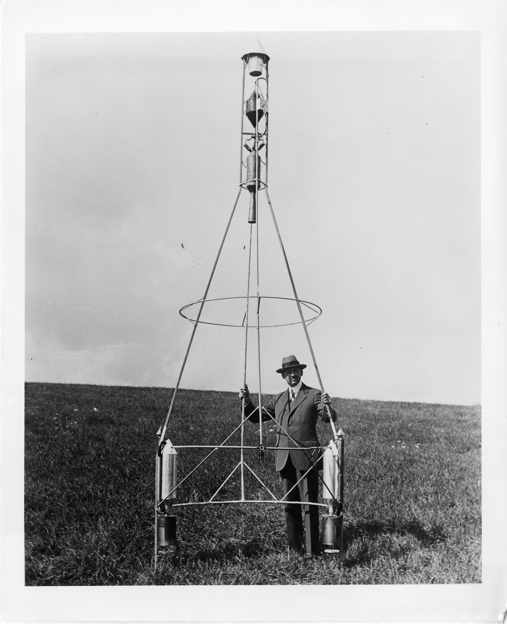Robert Hutchings Goddard (1882-1945) was a pioneer in modern rocket research, and on the faculty of Clark University. Mrs. Robert Goddard supplied this 1928 photo to Science Service.