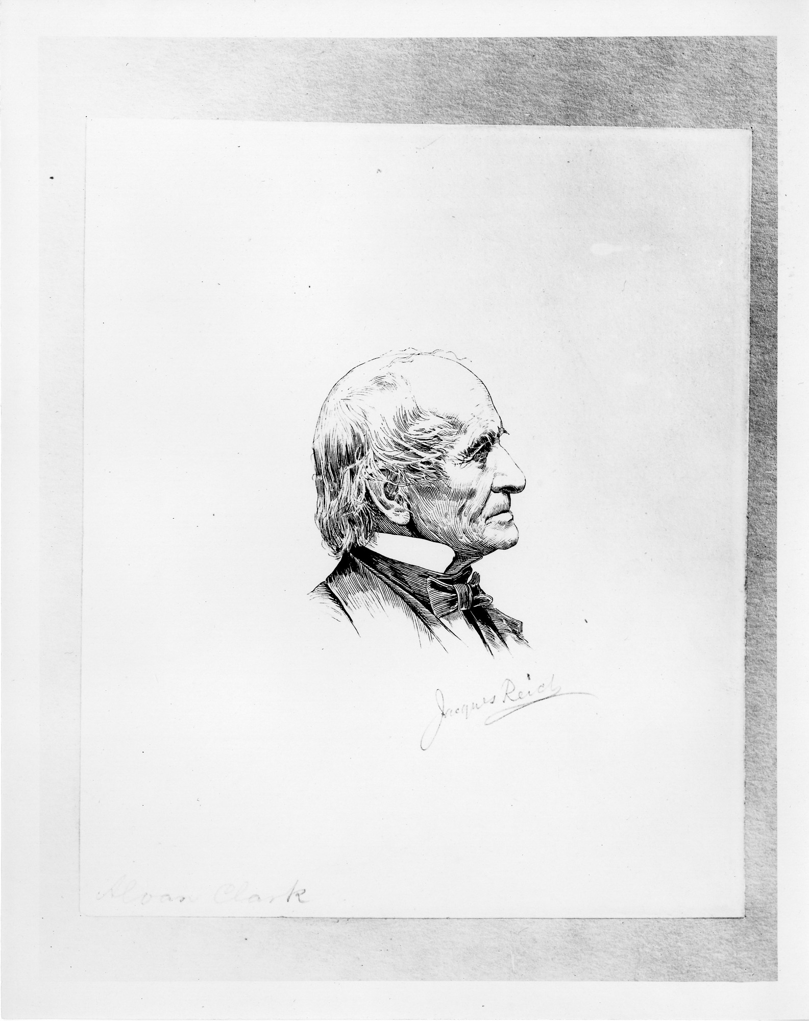 This is a pen and ink drawing, by Jacques Reich, of American astronomer and telescope maker Alvan Clark (1804-1887).