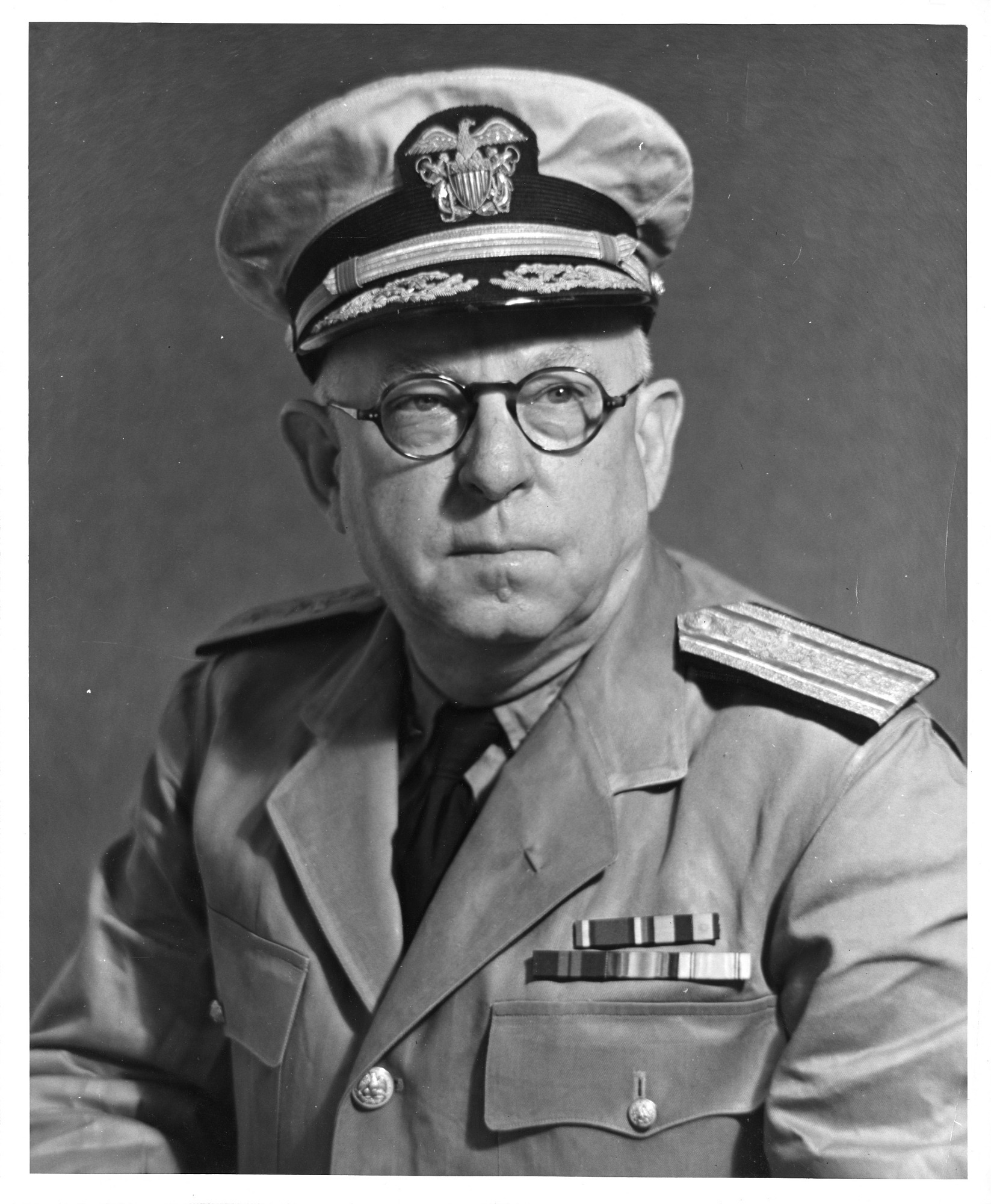 Howard Gardiner Bowen (1883-1965) was Director of Naval Research Laboratory, 1939-1942; in 1945, when the photograph was taken, he was a Rear Admiral and chief of the Navy's Office of Research and Inventions.