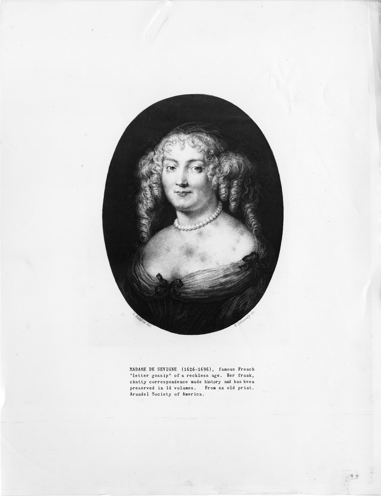 Print of French aristocrat Madame de Sevigne (1626-1696).