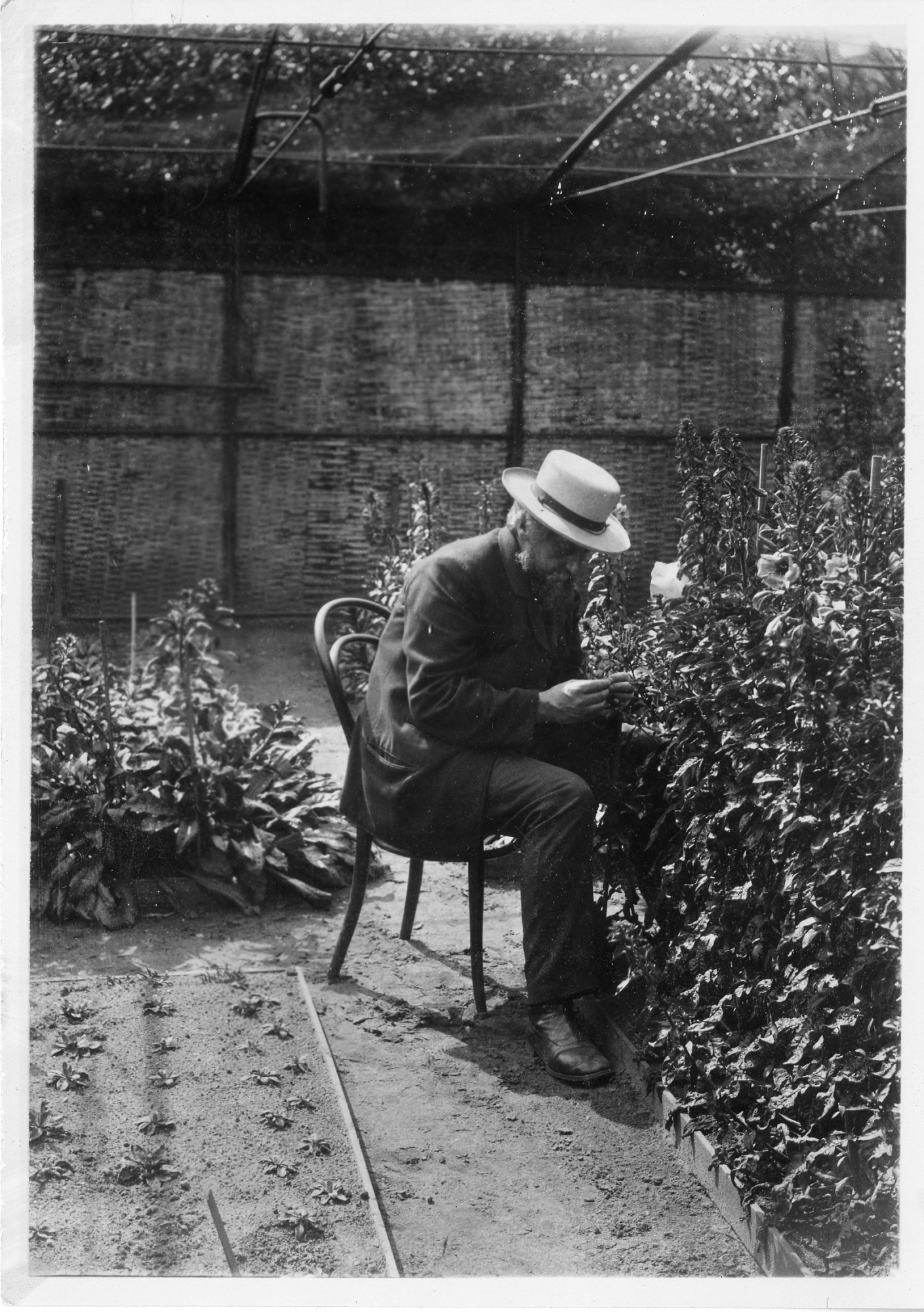 Dutch botanist and geneticist Hugo Marie De Vries (1848-1935) was known for his study of mutation. He is shown "in his garden at Lunteren, Holland."