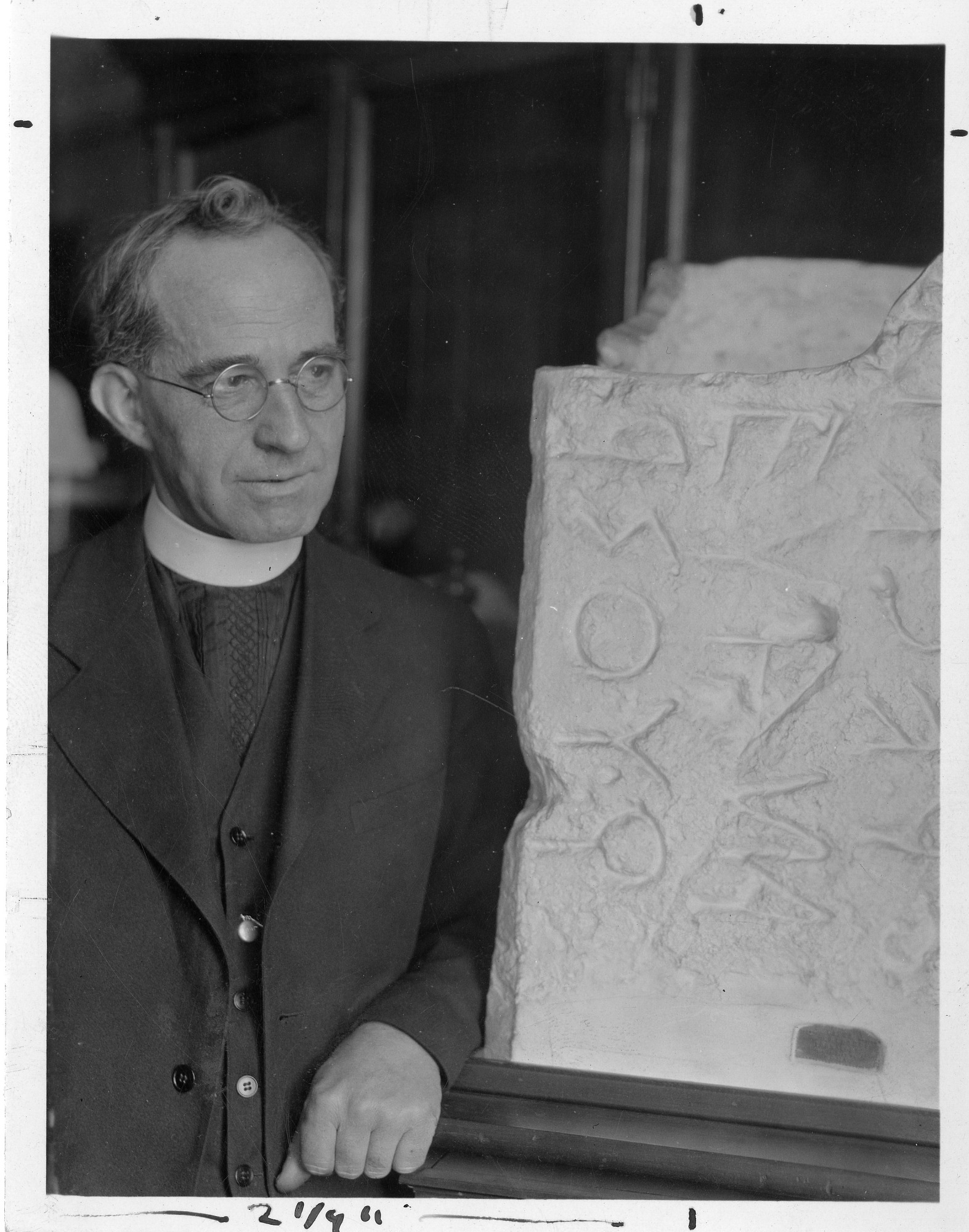 Archeologist Romain François Butin, S.M. (1871-1937) was Professor of Semitic and Egyptian languages at Catholic University, Washington, D.C. The caption on the original photograph reads, "Prof. Romain Butin, who concludes that the alphabet was invented in the Sinai wilderness."