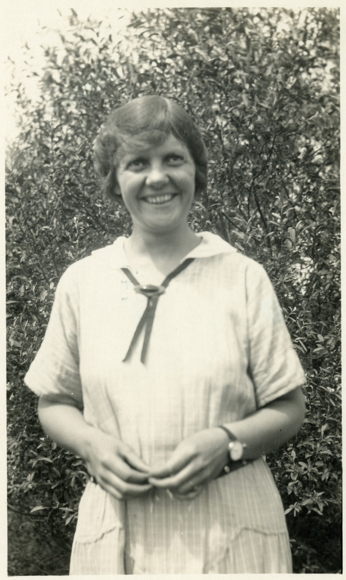 Plant pathologist and mycologist Frances Jean MacInnes (b. 1892) was working at Radcliffe College when this photograph was taken. She had attended the University of Illinois (B.S. in agriculture, 1916), University of Minnesota (M.S., 1919), and MIT (Ph.D. in chemistry, 1924). Author of Winter Fungi of the Apple (University of Illinois, 1916).