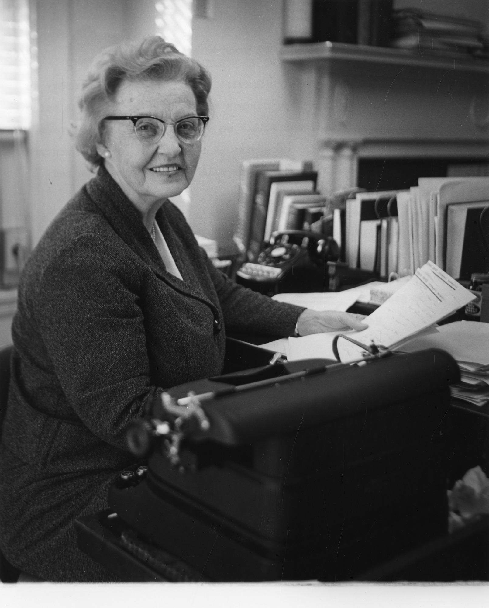 Between 1960 and 1970, Faye Johannes Marley (1900-1992) served as the Science Service medical writer. Before then, Marley had worked as an editor with the American Red Cross, 1943-1955. She had a B.A. from University of Missouri and M.A. from University of Michigan. This photograph was distributed in July 1962 when Marley attended the Eighth International Cancer Congress in Moscow.