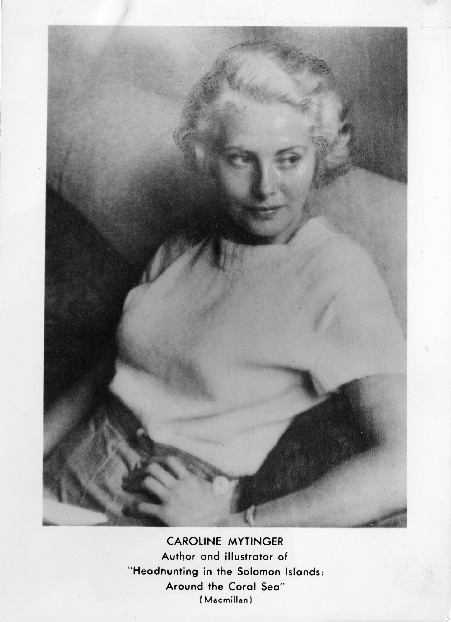 American portrait painter Caroline Mytinger (1897-1980) became known for her illustrations of indigenous peoples in the South Seas. In the 1930s, she began studying anthropology and anatomy, and applying these skills to representation of people of mixed race. She traveled to Haiti, Guatemala, and eventually to the Solomon Islands for ever more diverse subjects. This photograph was distributed in connection with her book Headhunting in the Solomon Islands: Around the Coral Sea (Macmillan, 1943).