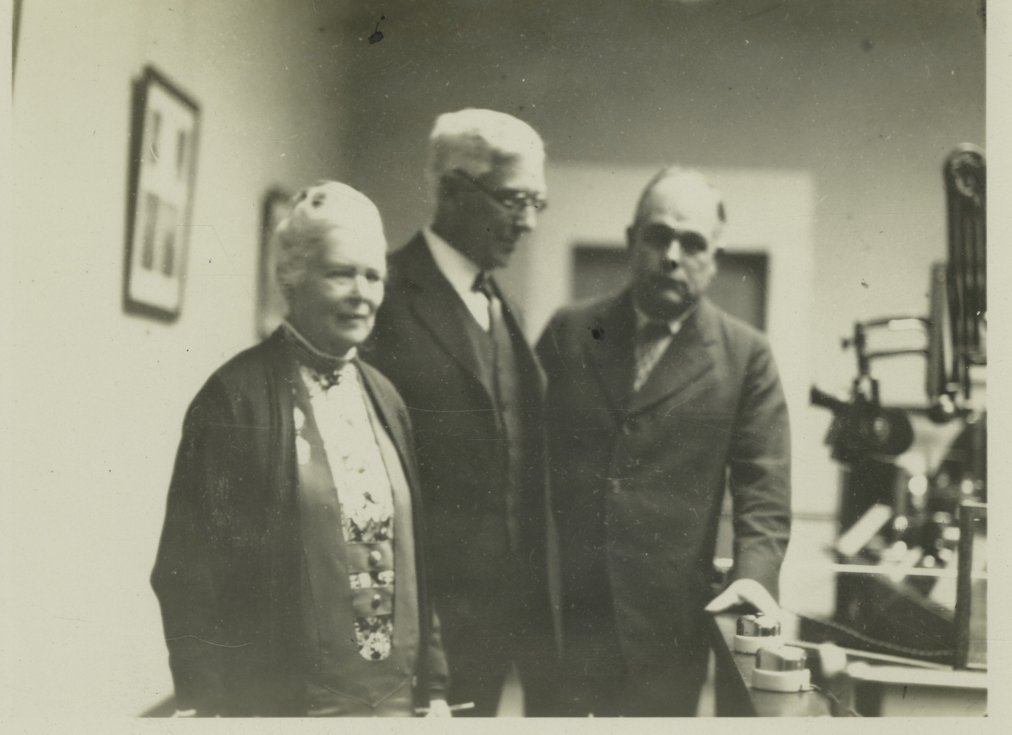 left to right: Elizabeth Kimball Watson (1857-1948), Thomas Augustus Watson (1854-1934), and Mr. Schloer