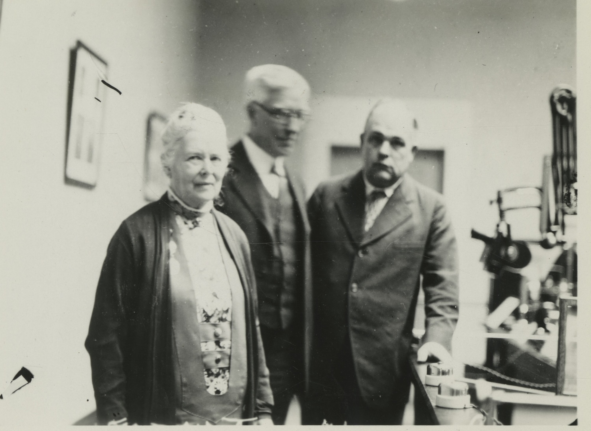 left to right: Elizabeth Kimball Watson (1857-1948), Thomas Augustus Watson (1854-1934), and Mr. Schloer
