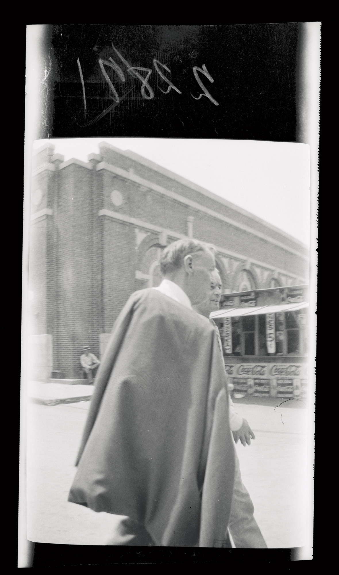 Clarence S. Darrow walking with unidentified man, Dayton, Tennessee