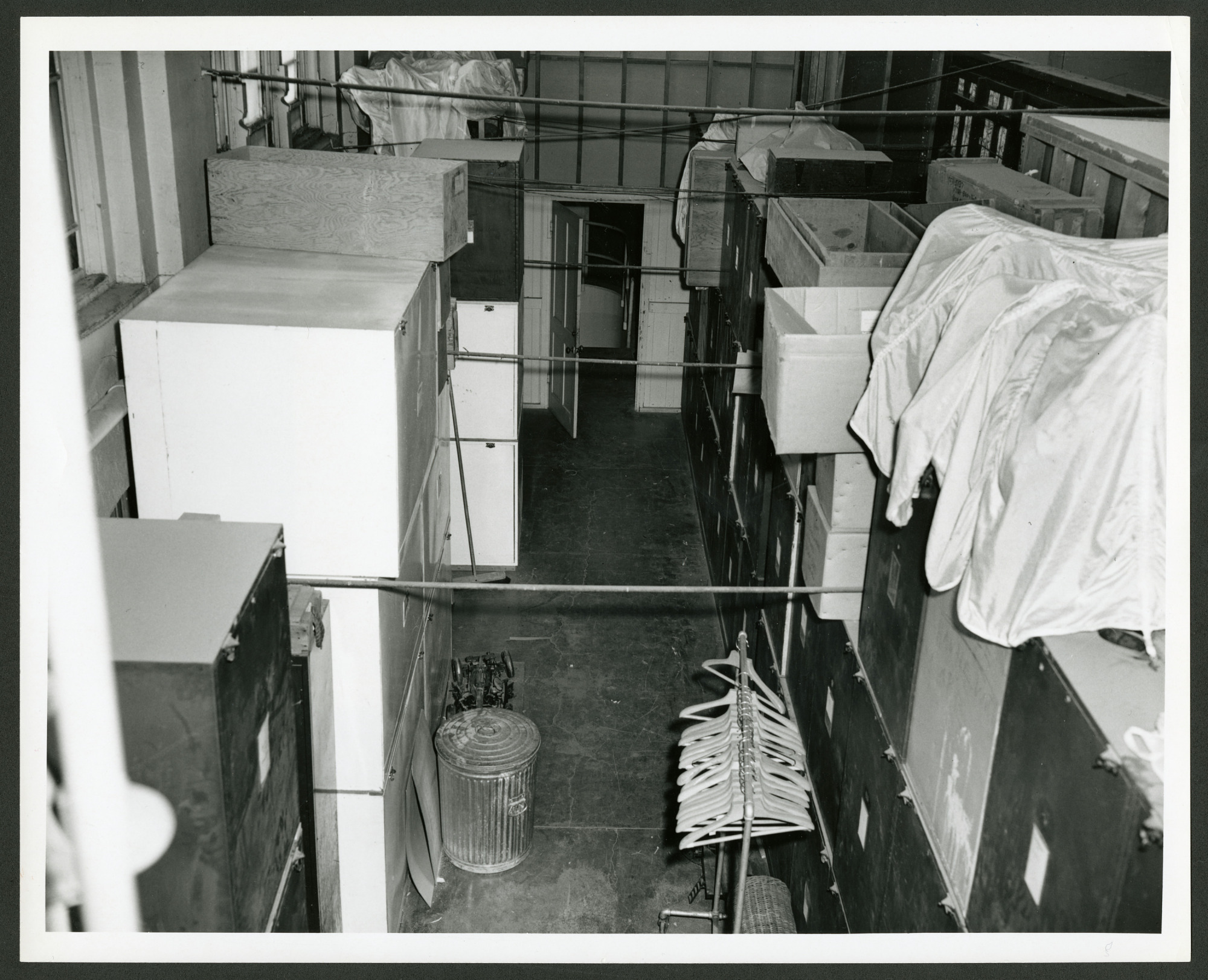 Political History/ Costume/ Military History storage area, looking east, before removal of Military History items to establish staging area for Costumes