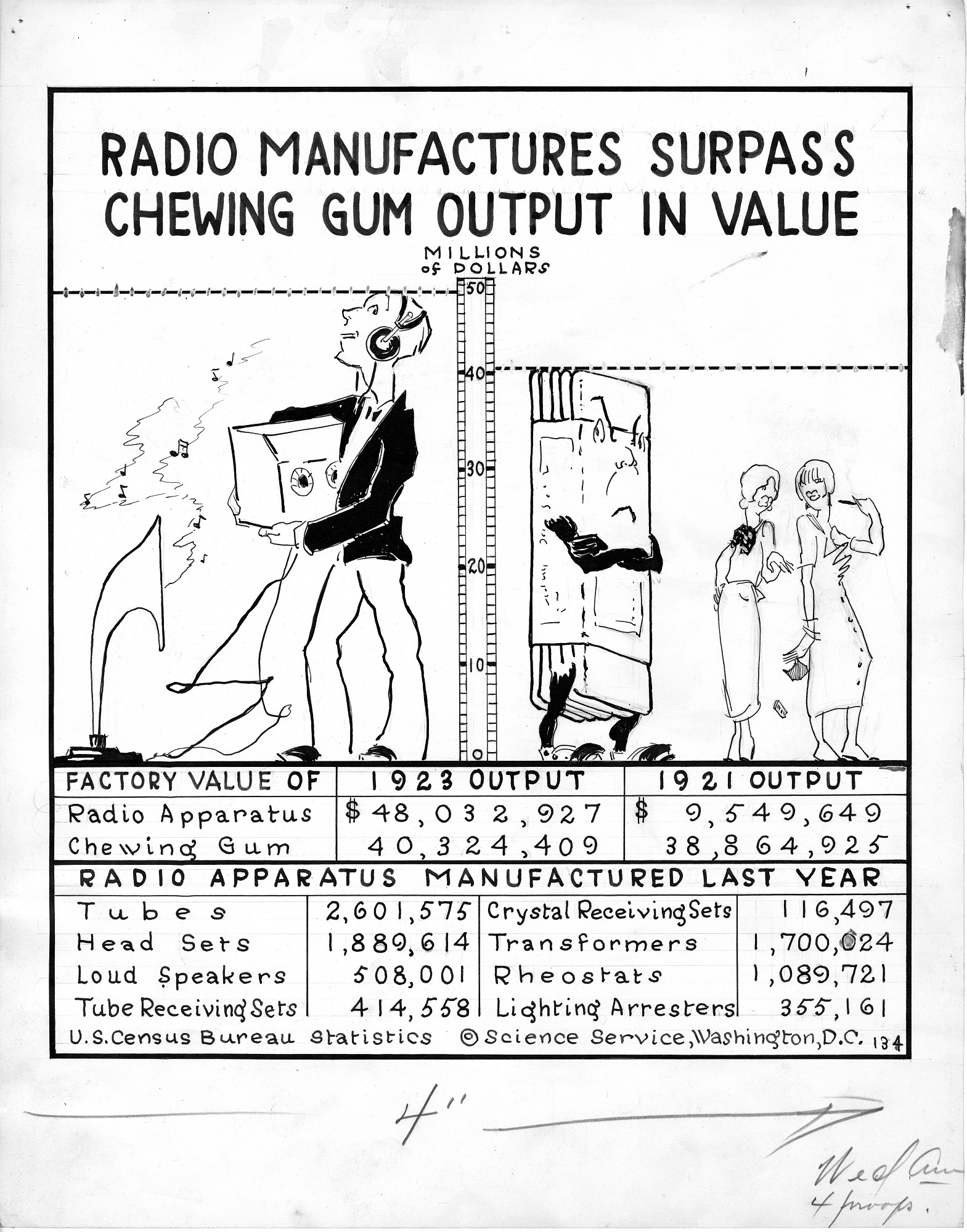 Cartoonograph #134: "Radio Manufactures Surpass Chewing Gum Output in Value"