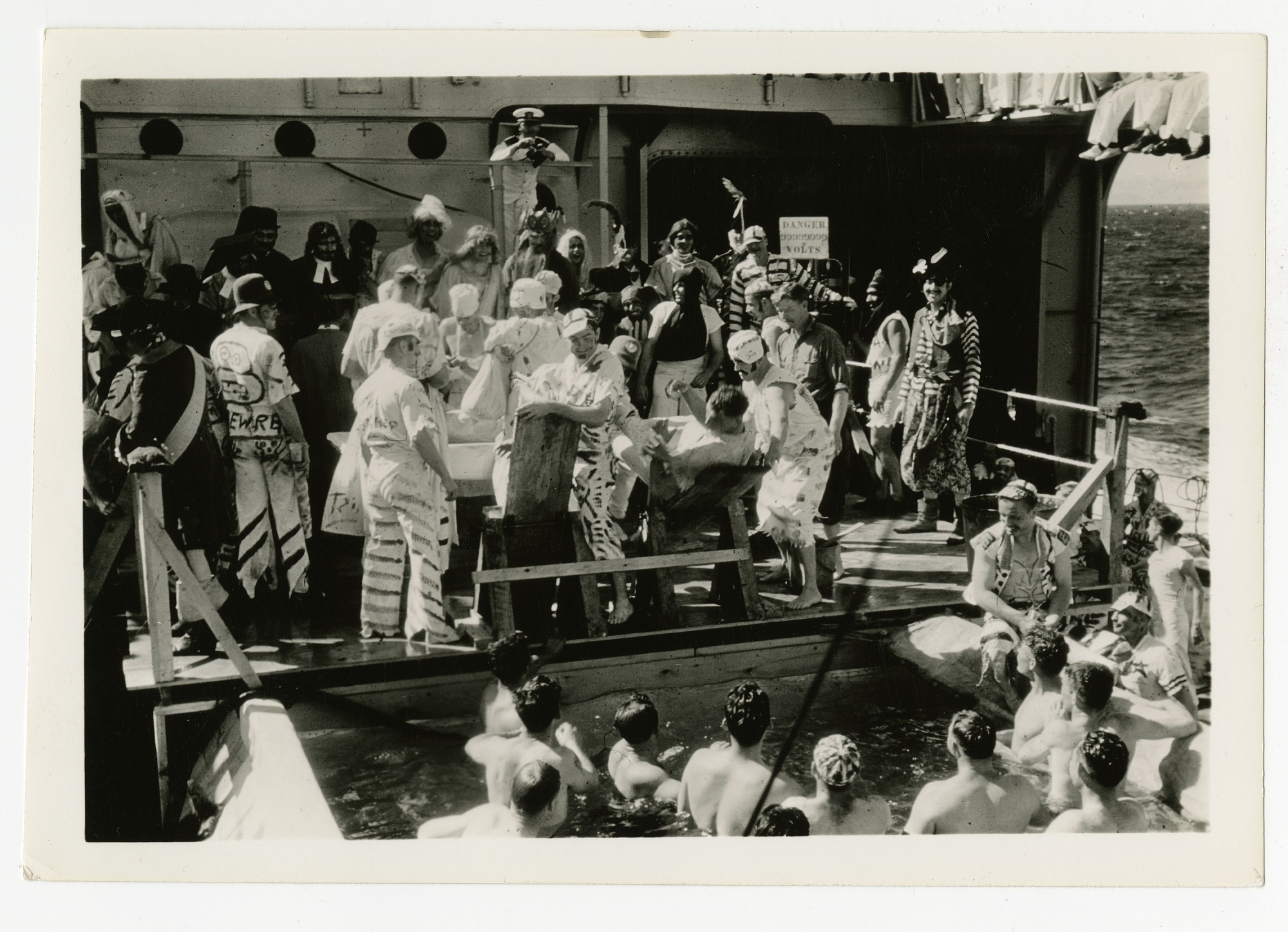 Shellback Ceremony aboard USS Houston, Presidential Cruise, 1938. Ceremony during the Presidential Cruise of 1938, commemorating crossing the ecuator
