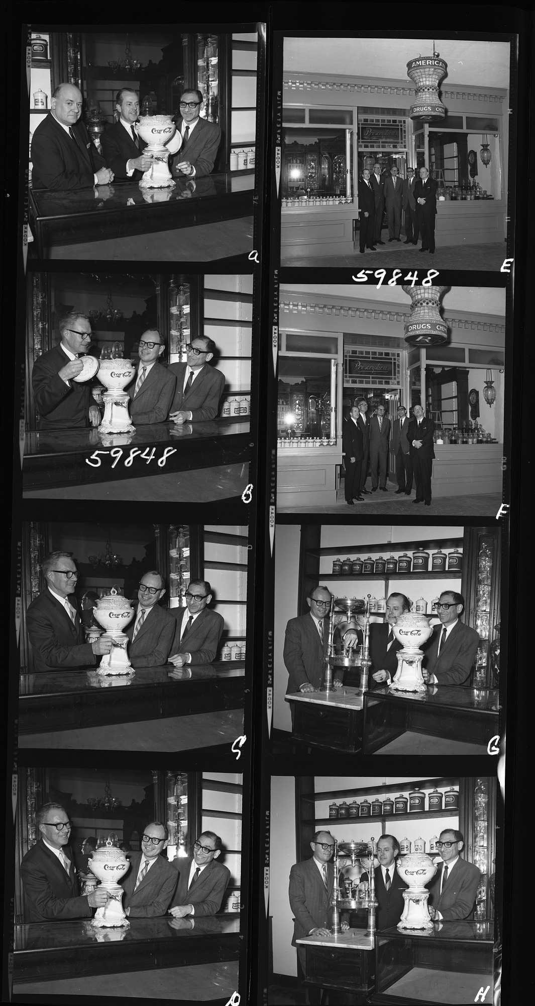 Coca-Cola presentation to Division of Medical Science of the Museum of History and Technology (MHT), now known as the National Museum of American History, with curator Sami K. Hamarneh and MHT Director Robert P. Multhauf.