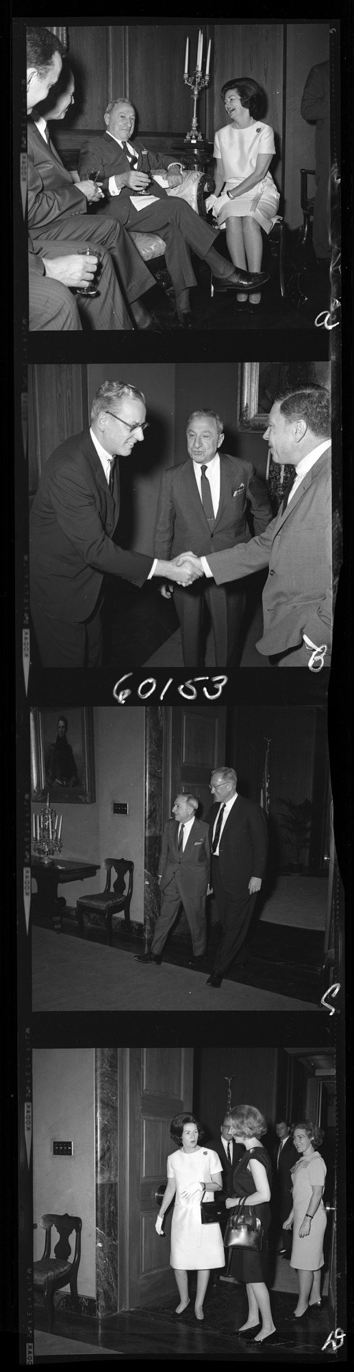 Luncheon and press conference at Museum of History and Technology, now known as National Museum of American History, with Joseph and Olga Hirshhorn, Assistant Secretary James C. Bradley, and Lady Bird Johnson.