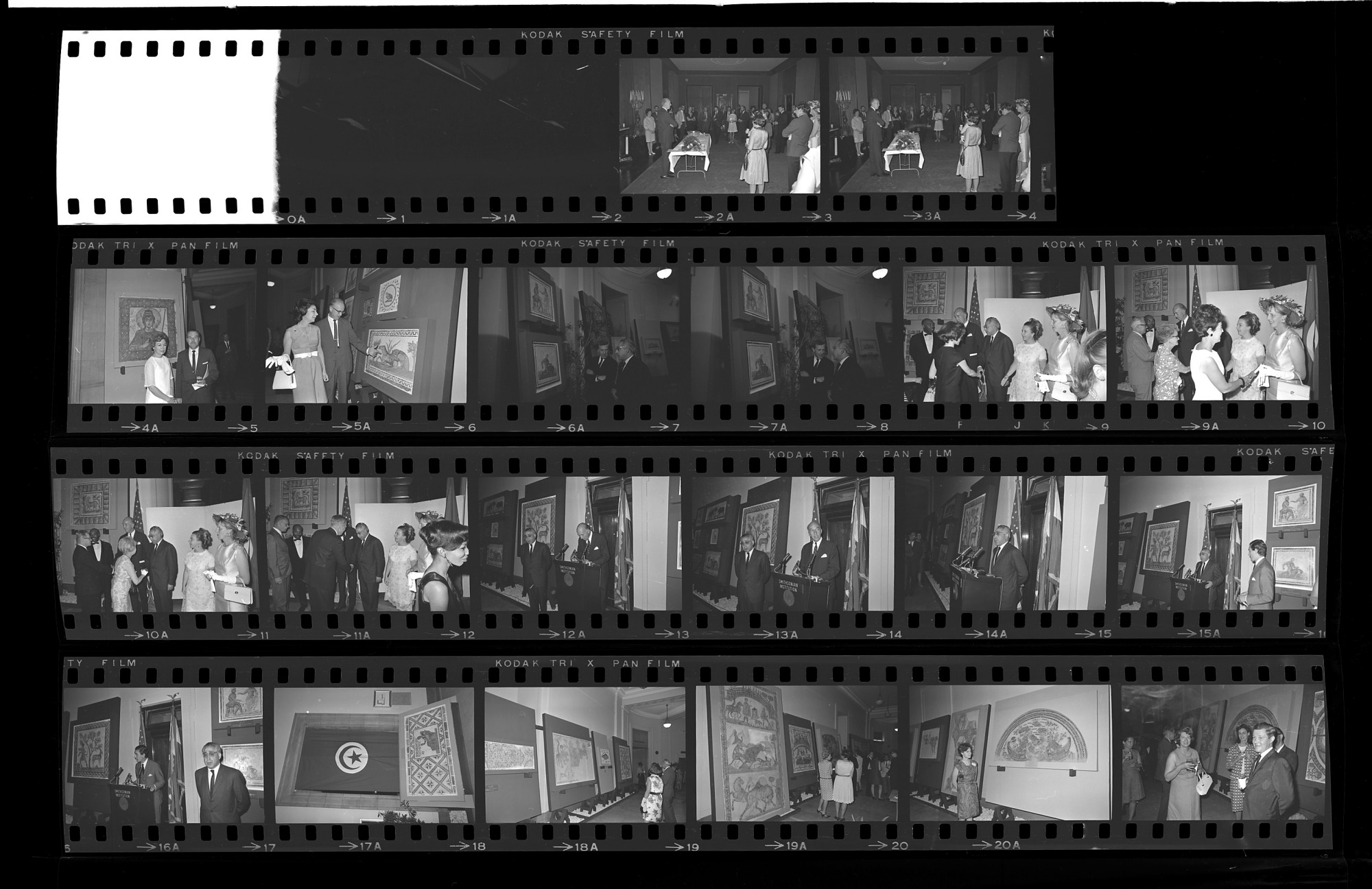 Reception for exhibition of Tunisian mosaics at Museum Natural History, sponsored by Smithsonian Institution Traveling Exhibition Service (SITES), with Secretary S. Dillon Ripley and Mary Livingston Ripley.