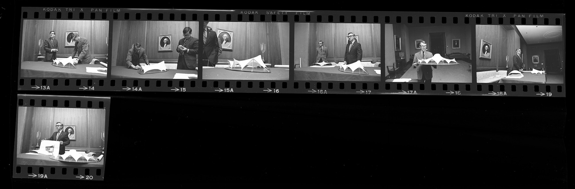 Press conference with James R. Morris, Director of the Division of Performing Arts at the Museum of History and Technology, now known as the National Museum of American History, featuring a model of a proposed Theater on the Mall.