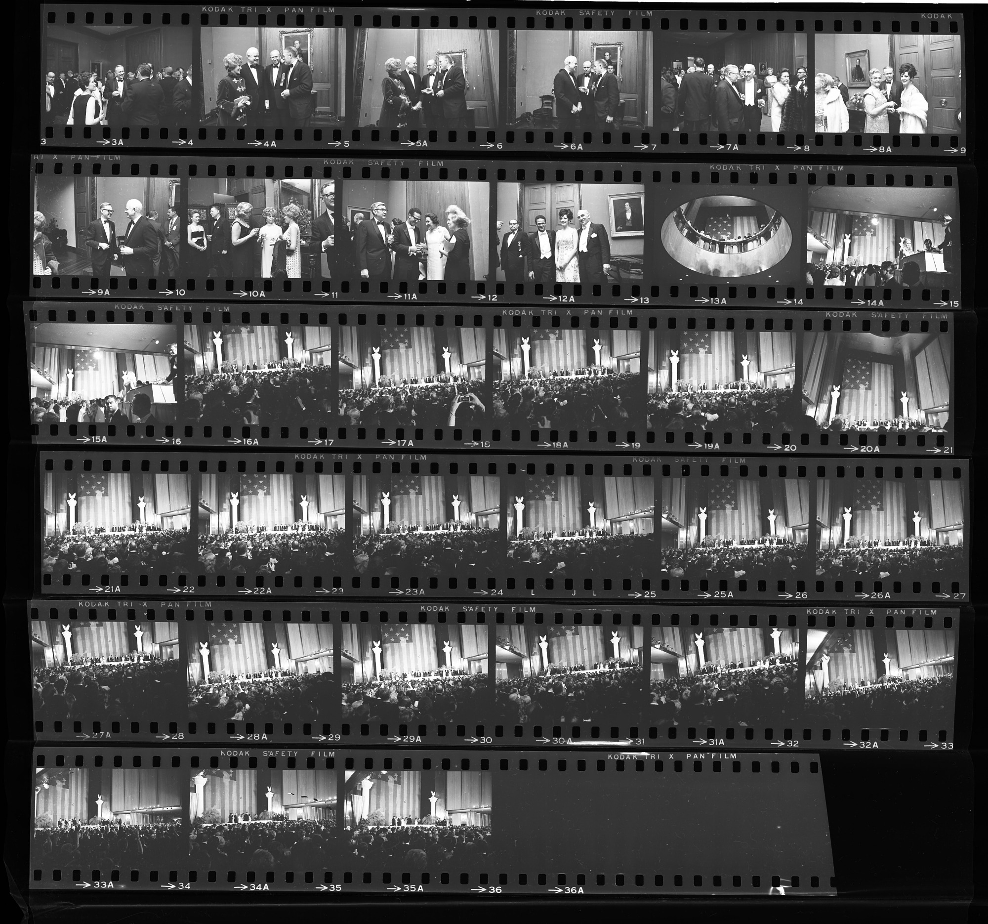 Inaugural Ball for United States President Richard Milhous Nixon at the Museum of History and Technology, now known as the National Museum of American History, with Patricia Nixon and Secretary S. Dillon Ripley. Featuring views of the Star-Spangled Banner.