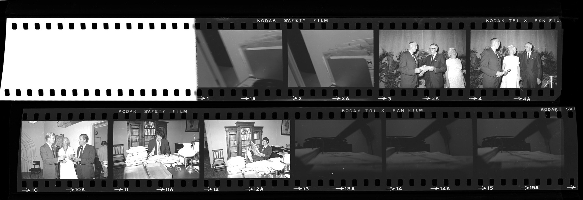 Retirement party for unidentified staff member, with Frank A. Taylor, Director General of Museums. ; Farewell party for Robert W. Mason, executive assistant to the Secretary. ; Unidentified staff member at desk.