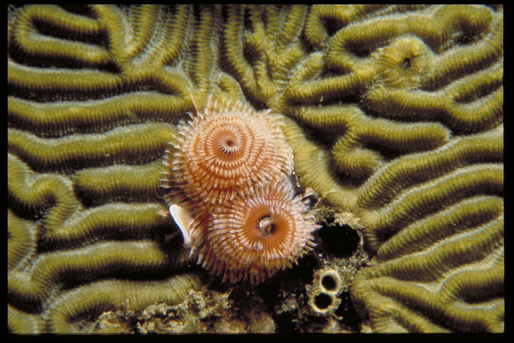 Underwater View of Sea Worms and Coral, Panama, STRI