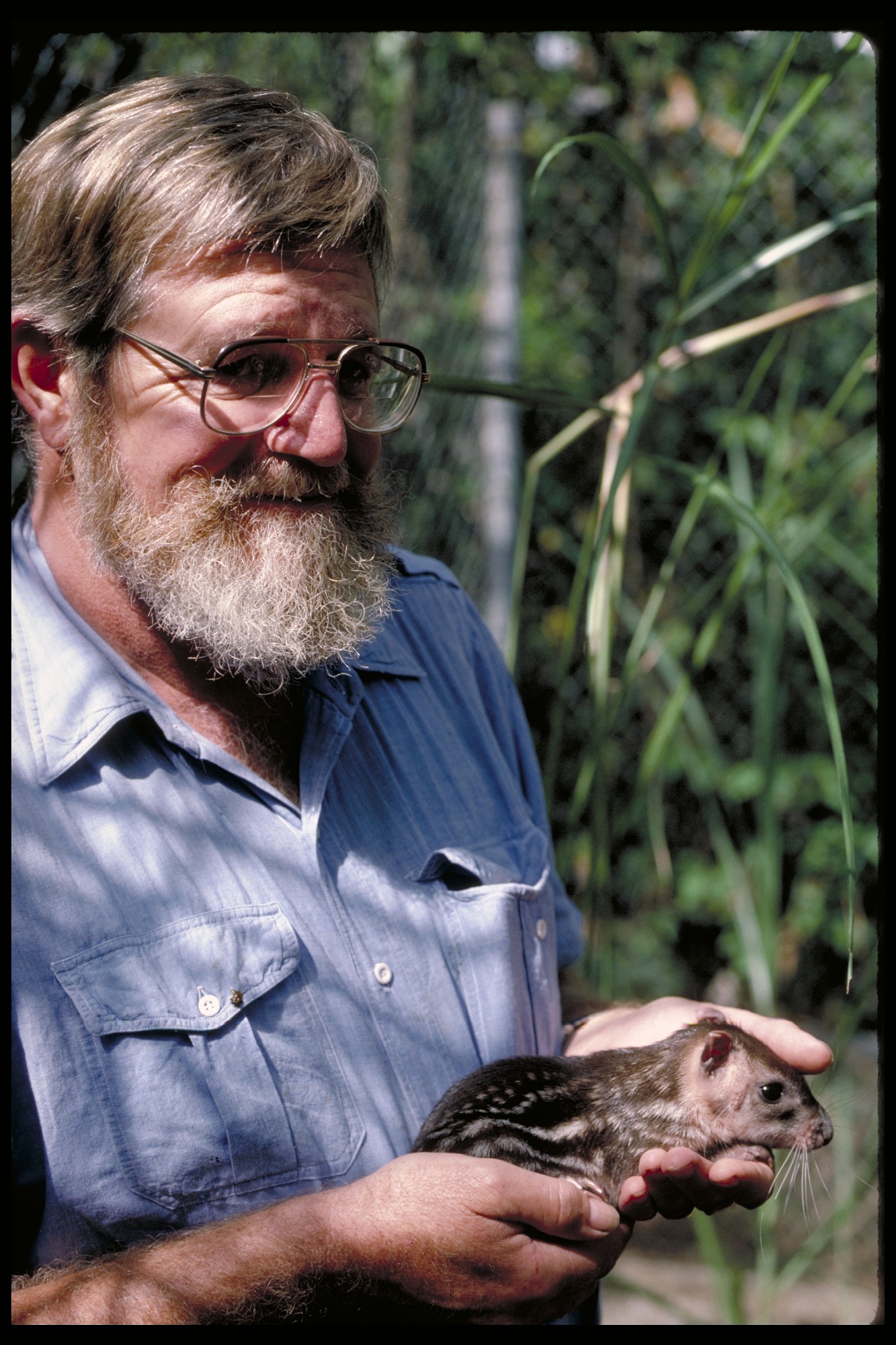 Biologist Nicholas Smythe with Baby Paca, Panama, STRI