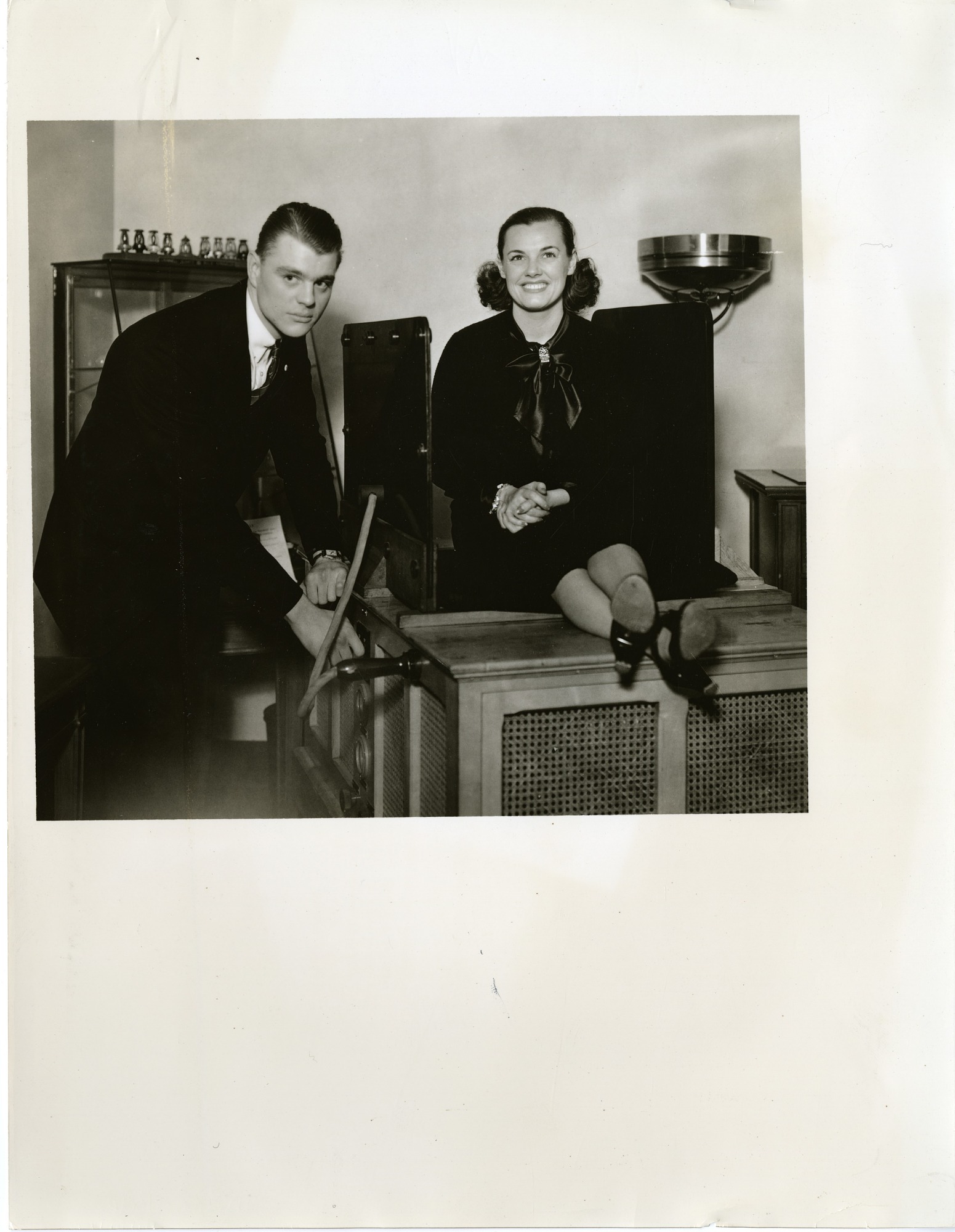 George W. Knapp (left) and Eleanor Holm Jarrett (right), at the General Electric "House of Magic," 1936