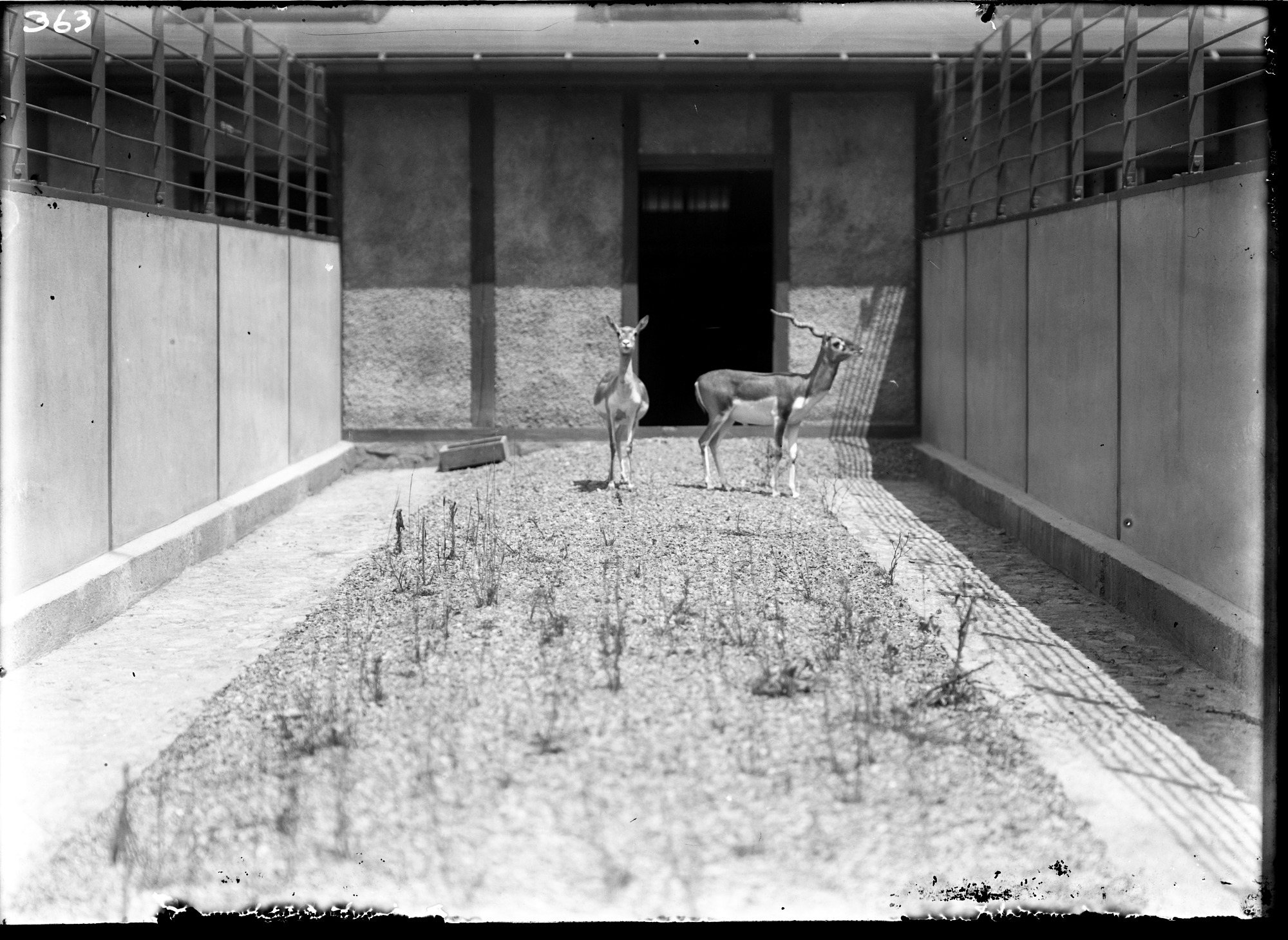 Two blackbucks, or Indian antelope, in exterior yard of the Antelope House at the National Zoological Park.