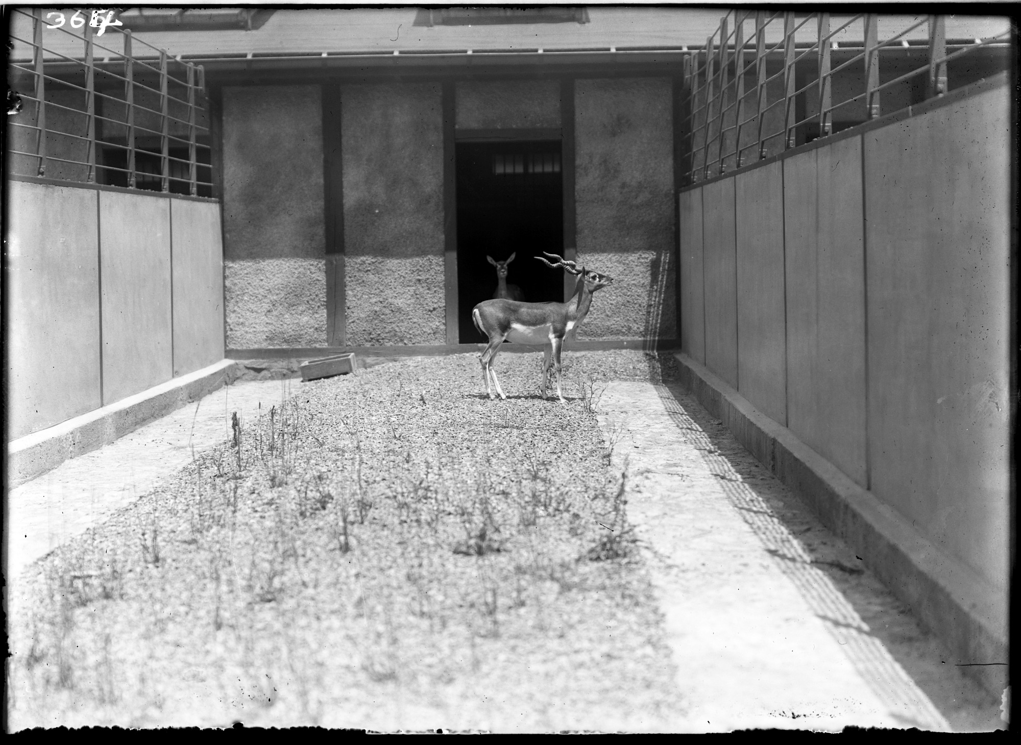 Two blackbucks, or Indian antelope, in exterior yard of the Antelope House at the National Zoological Park.