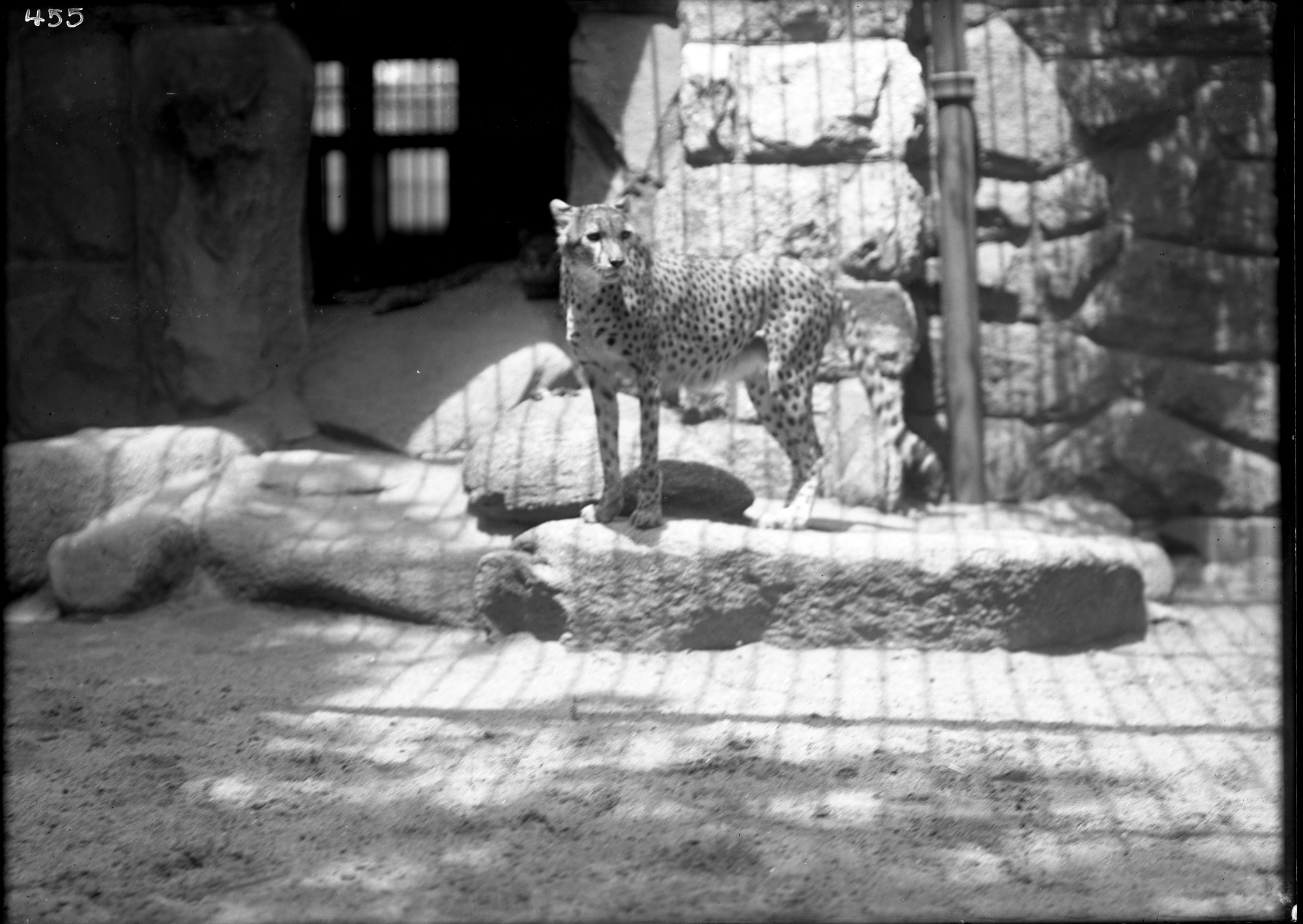 African cheetah in exterior enclosure of the Lion House at the National Zoological Park.