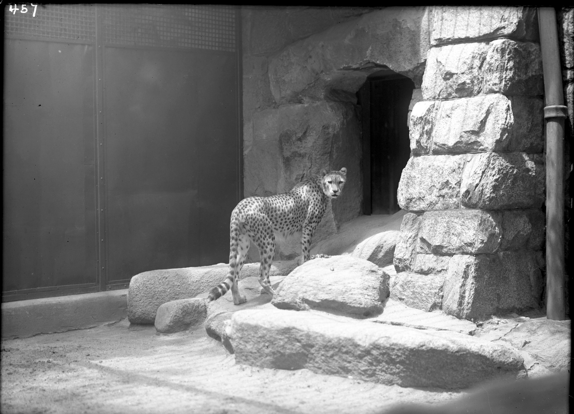 African cheetah in exterior enclosure of the Lion House at the National Zoological Park.