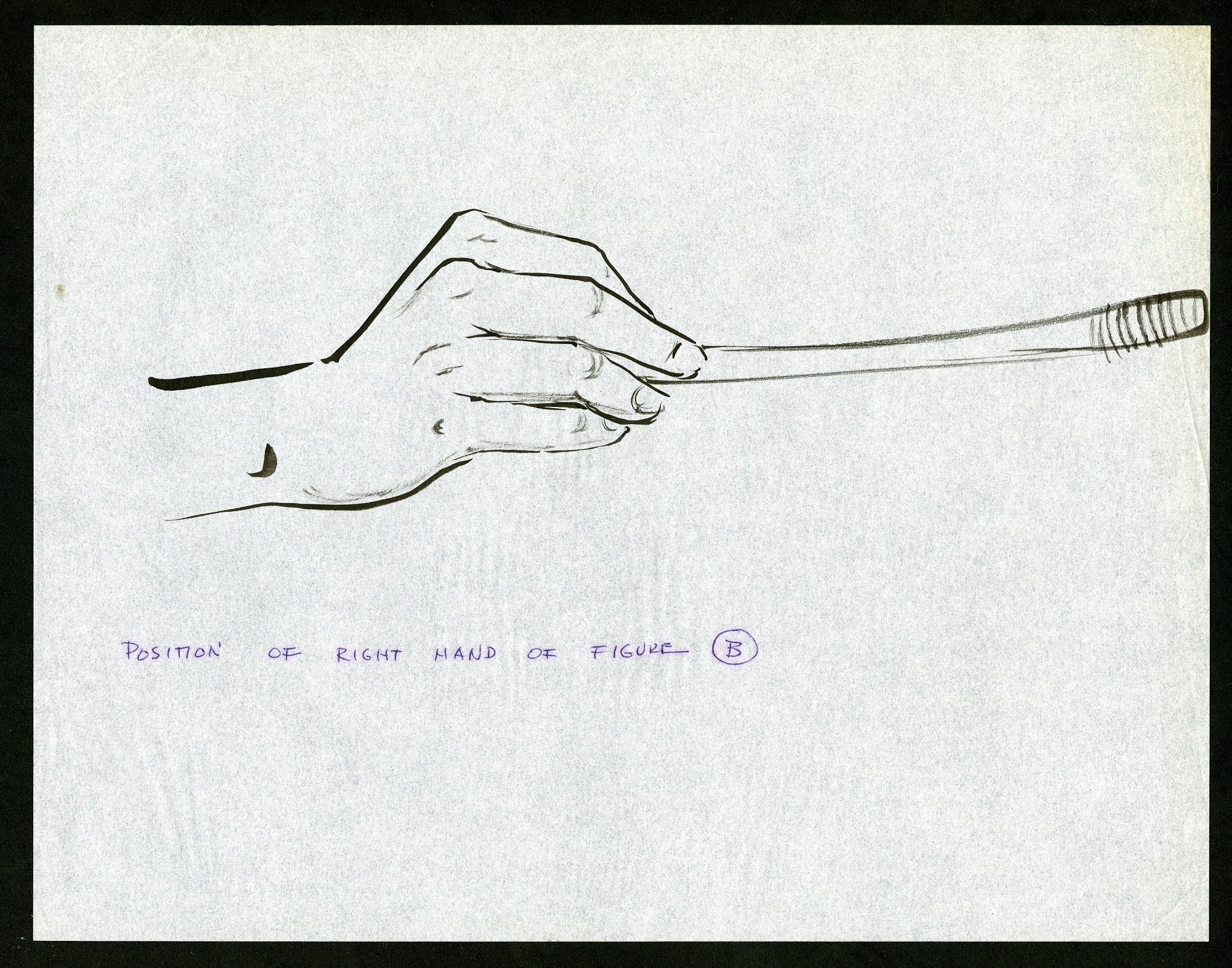 Sketch of "position of right hand of figure B" to be used in the "Maori Life Group" case, which was Case 48 in Hall 8 (Peoples of the Pacific) in the National Museum of Natural History.