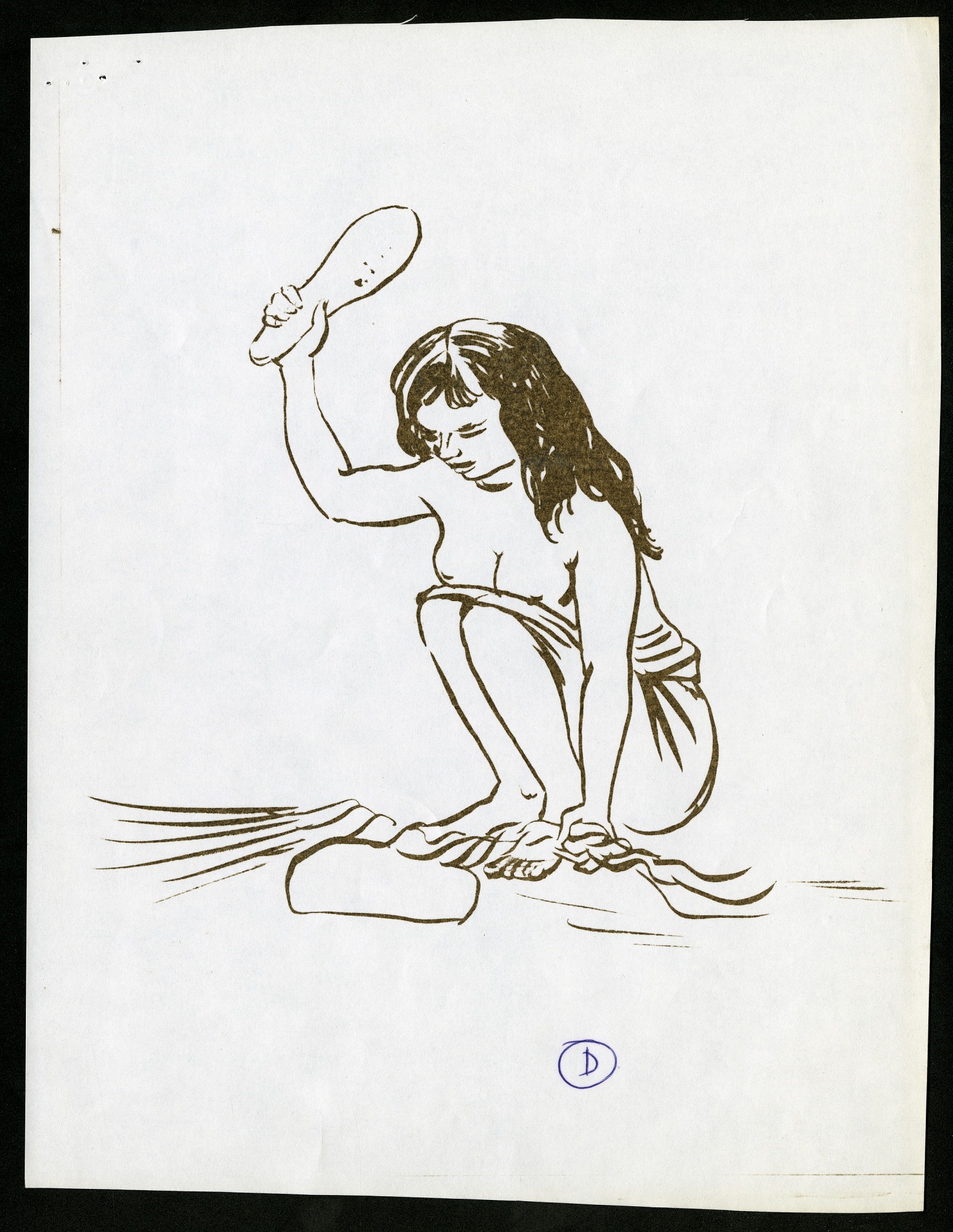 Sketch of mannequin model D to be used in the "Maori Life Group" case, which was Case 48 in Hall 8 (Peoples of the Pacific) in the National Museum of Natural History.