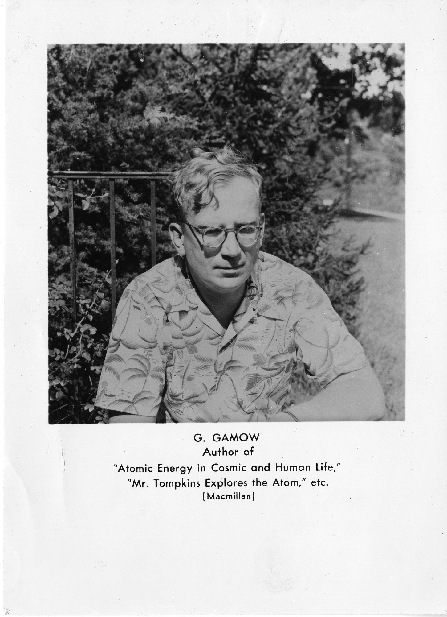 George Gamow (1904-1968), Professor of Physics, George Washington University. This photograph was distributed as publicity for his textbook Atomic Energy in Cosmic and Human Life (1947).