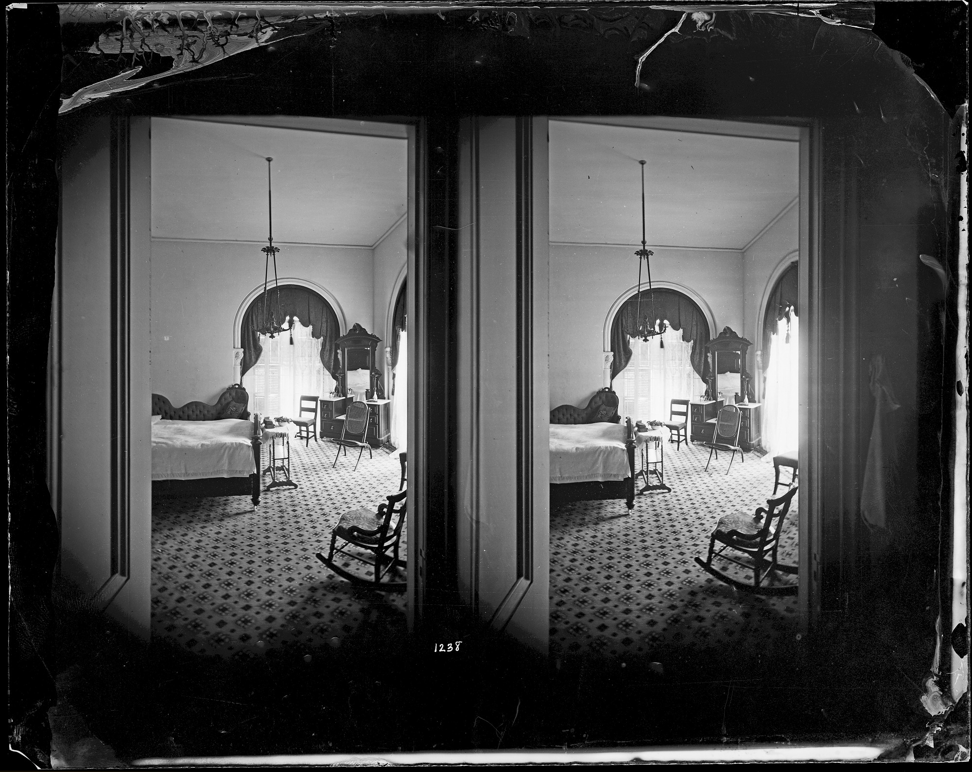Interior view, bedroom in the Henry apartments in the southwest corner of the East Wing of the Smithsonian Institution Building, or Castle.