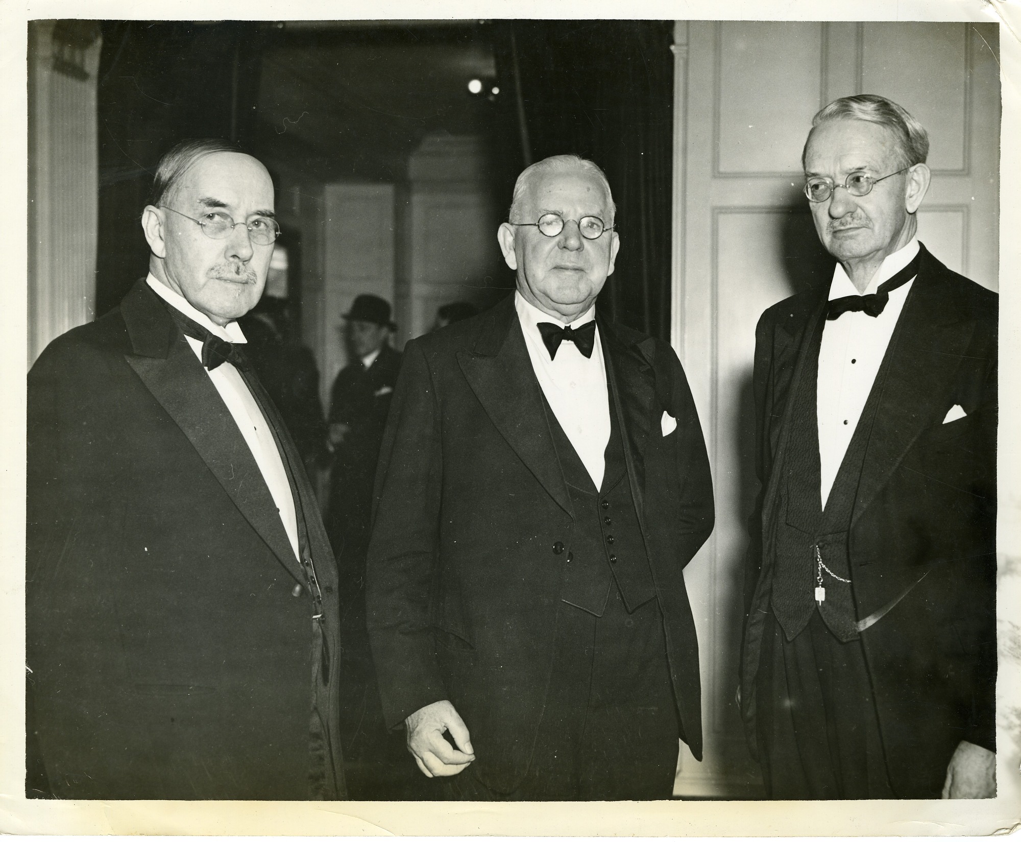 left to right: John Campbell Merriam (1869-1945), paleontologist and president of the Carnegie Institution of Washington; Sir Richard Arman Gregory (1864-1952), astronomer and editor of the journal "Nature"; and Prof. Edwin Grant Conklin (1863-1952), Professor of Zoology, Princeton University.