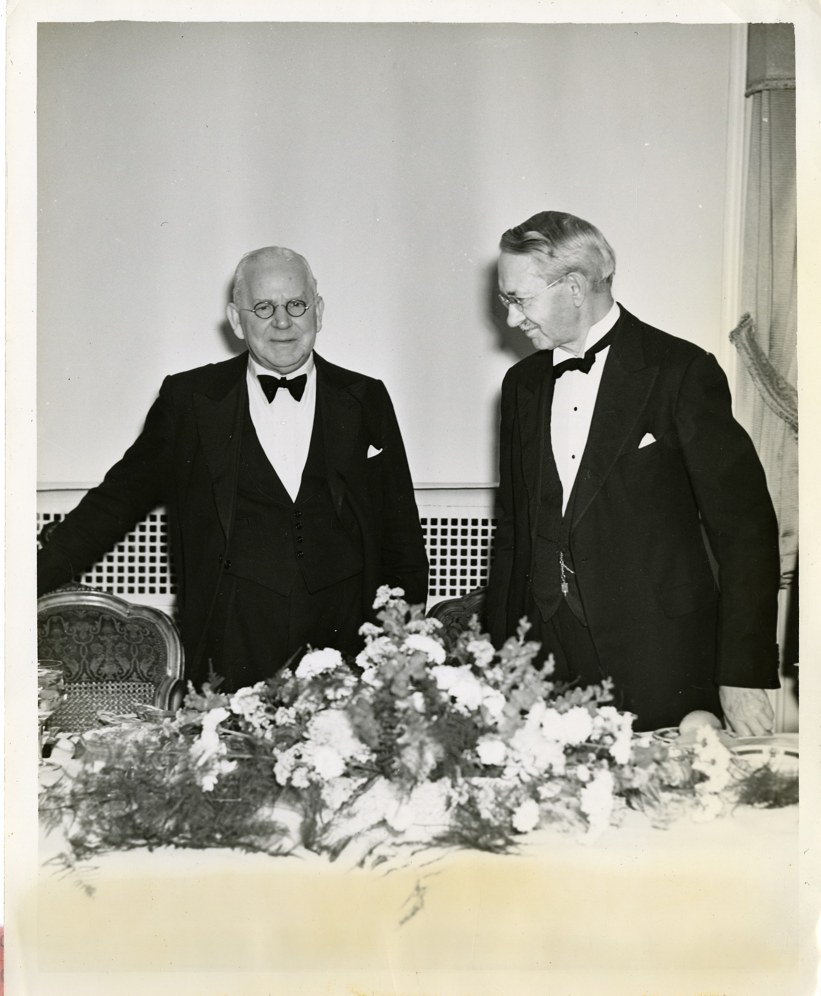 left to right: Sir Richard Arman Gregory (1864-1952), Editor of the journal "Nature"; and Prof. Edwin Grant Conklin (1863-1952), Professor of Zoology, Princeton University.