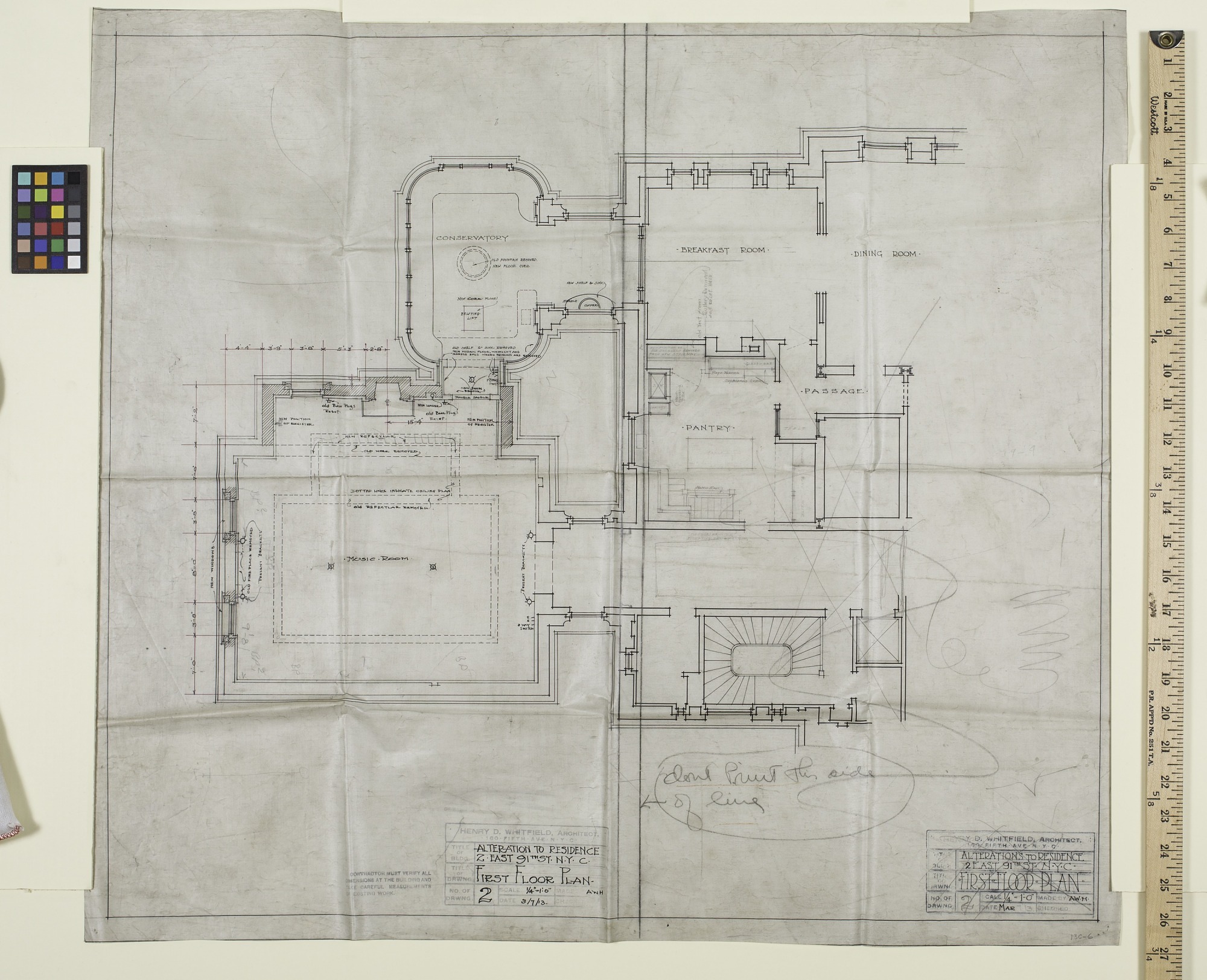 First floor plan: alteration to residence 2 East 91st Street NYC. 1/4 inch scale drawing.