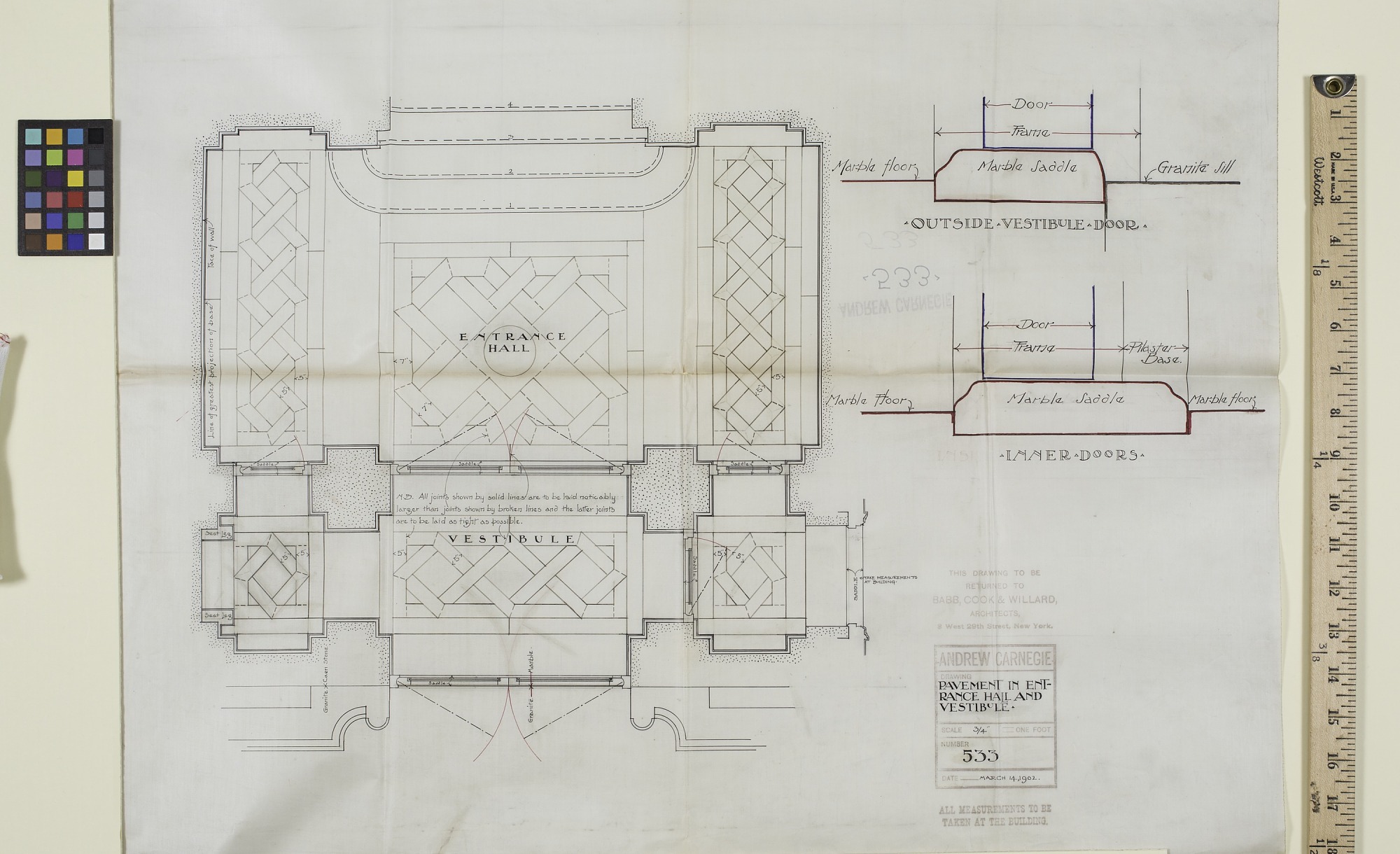 Pavement in entrance hall and vestibule. 3/4 inch scale drawing.