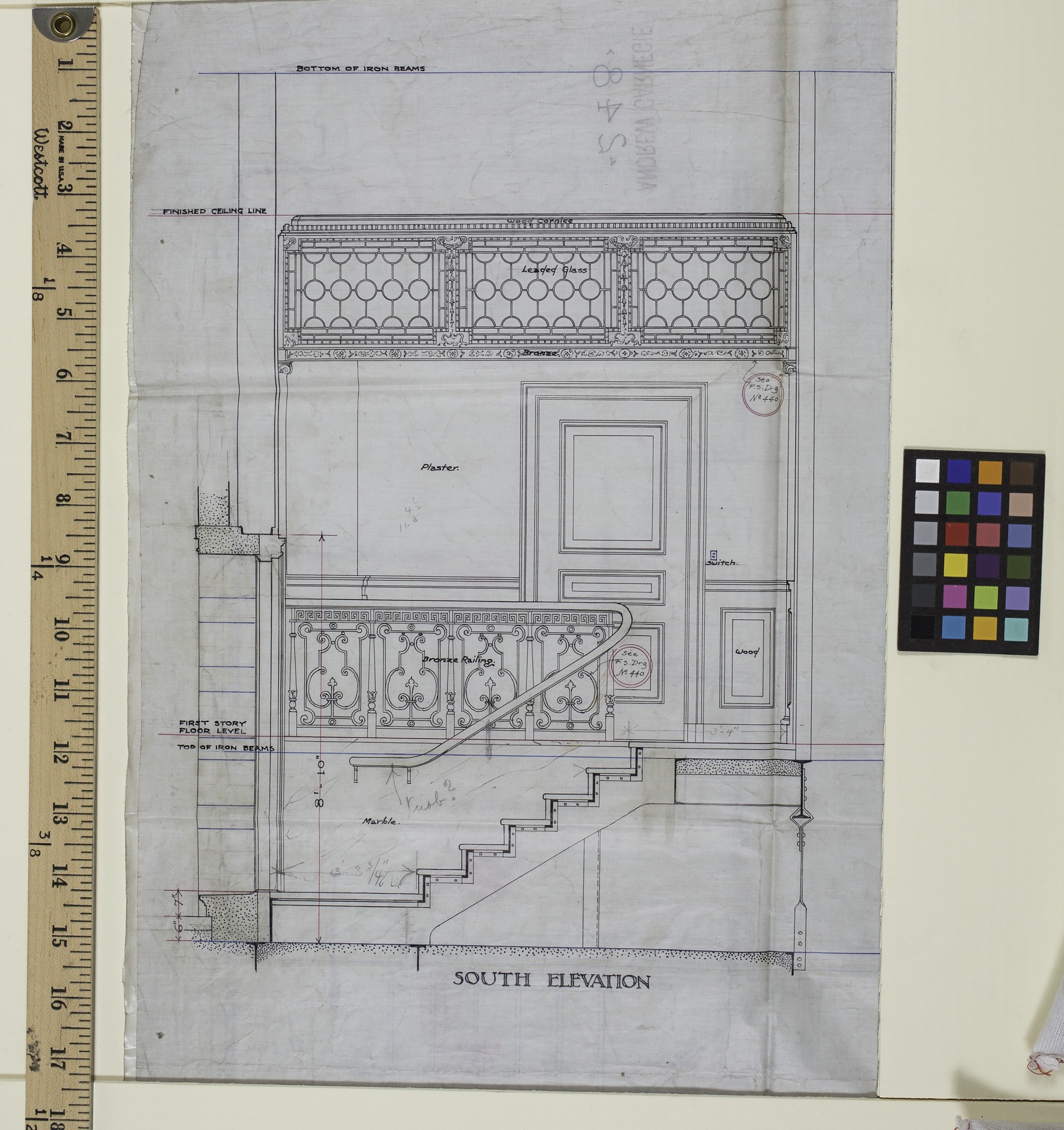 South elevation of 1st story waiting room. Only part of drawing NYC-1-A-248.
