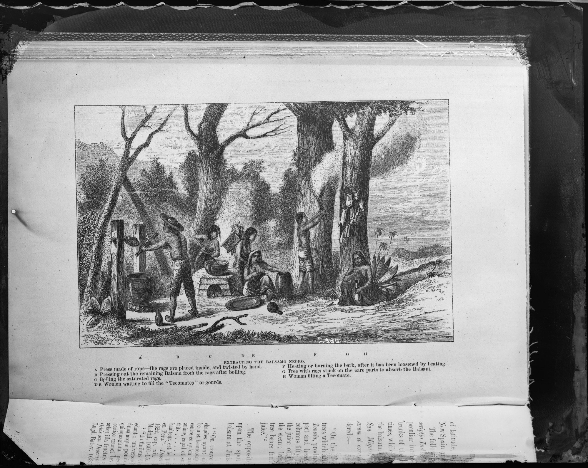 Page from "Science Papers, Chiefly Pharmacological and Botanical" by Daniel Hanbury. Contains illustration of "Extracting the Balsamo Negro."