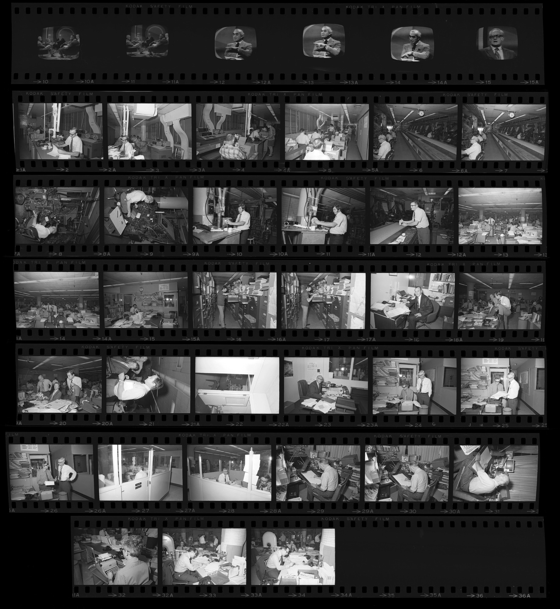 "Hall of News Reporting" exhibit at the National Museum of History and Technology (NMHT), now known as the National Museum of American History, featuring documentation of news gathering, reporting, printing, and distribution processes.