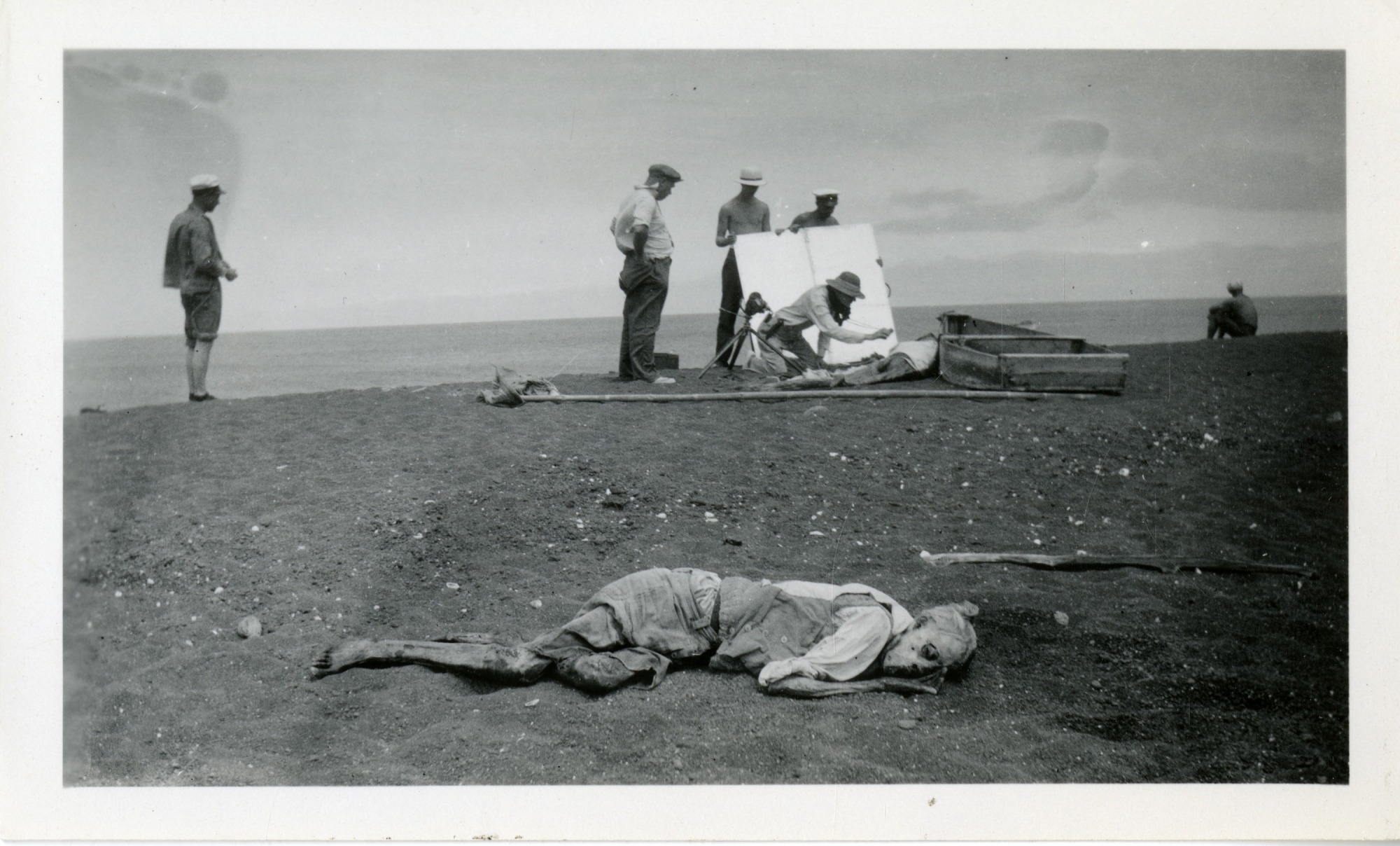 Body of Rudolph Lorenz, Velero crew with body of Captain Nygurrud in background [NOTE: Graphic Content]