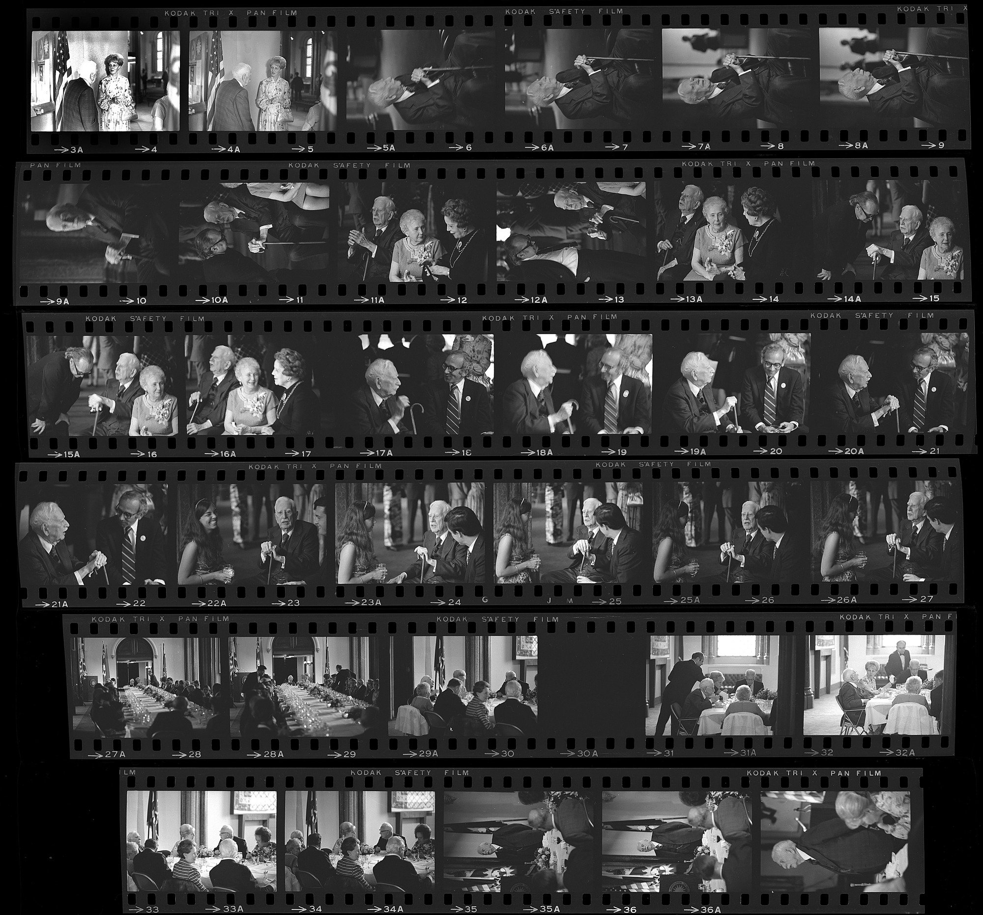 Regents Dinner for former Secretary Dr. Charles Greeley Abbot's 100th Birthday Party held in the Great Hall of the Smithsonian Institution Building, or Castle, with wife Virginia Andes Johnston Abbott, and Mary Livingston Ripley.