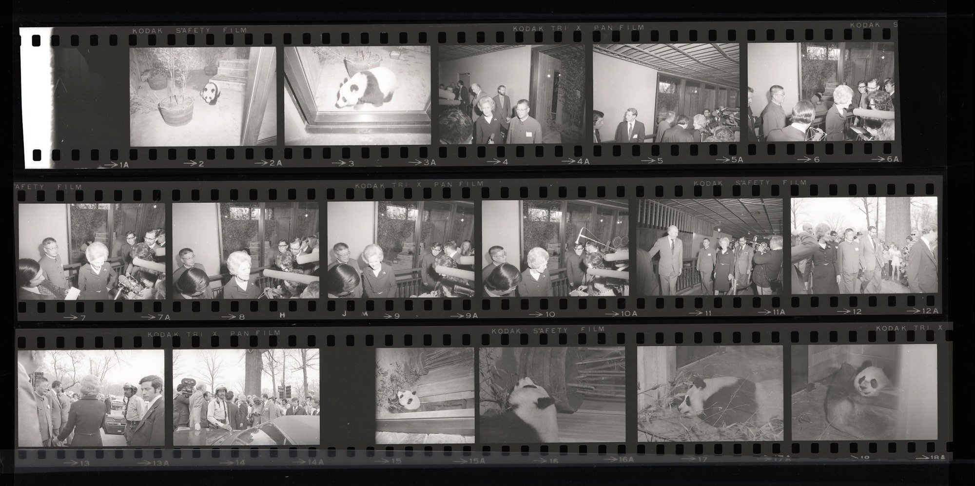 Presentation of giant pandas Hsing-Hsing and Ling-Ling to the National Zoological Park (NZP) from the People's Republic of China, with First Lady Patricia Nixon, Secretary S. Dillon Ripley and NZP Director Theodore Reed.