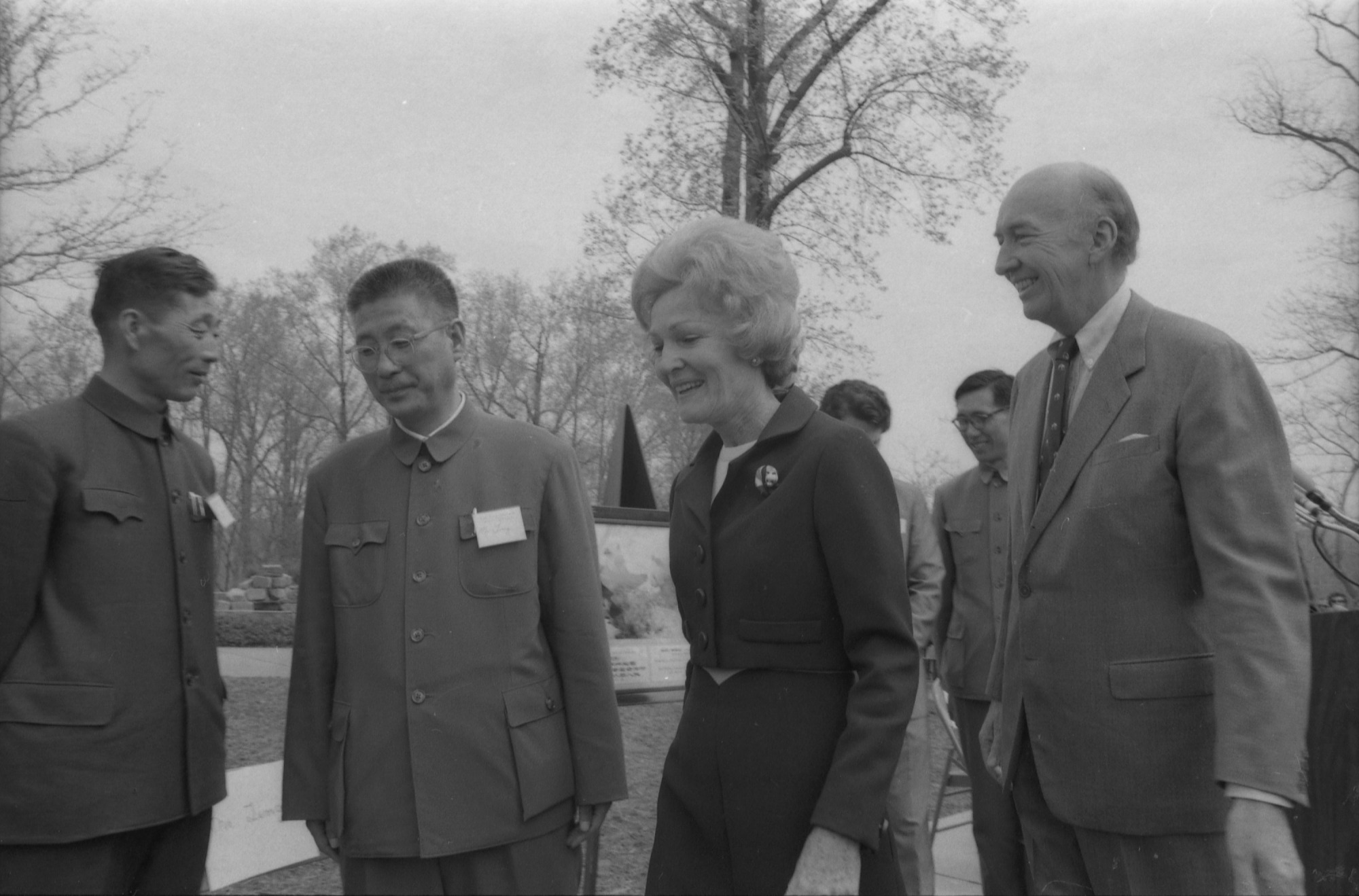 Presentation of giant pandas Hsing-Hsing and Ling-Ling to the National Zoological Park (NZP) from the People's Republic of China, with First Lady Patricia Nixon and Secretary S. Dillon Ripley.