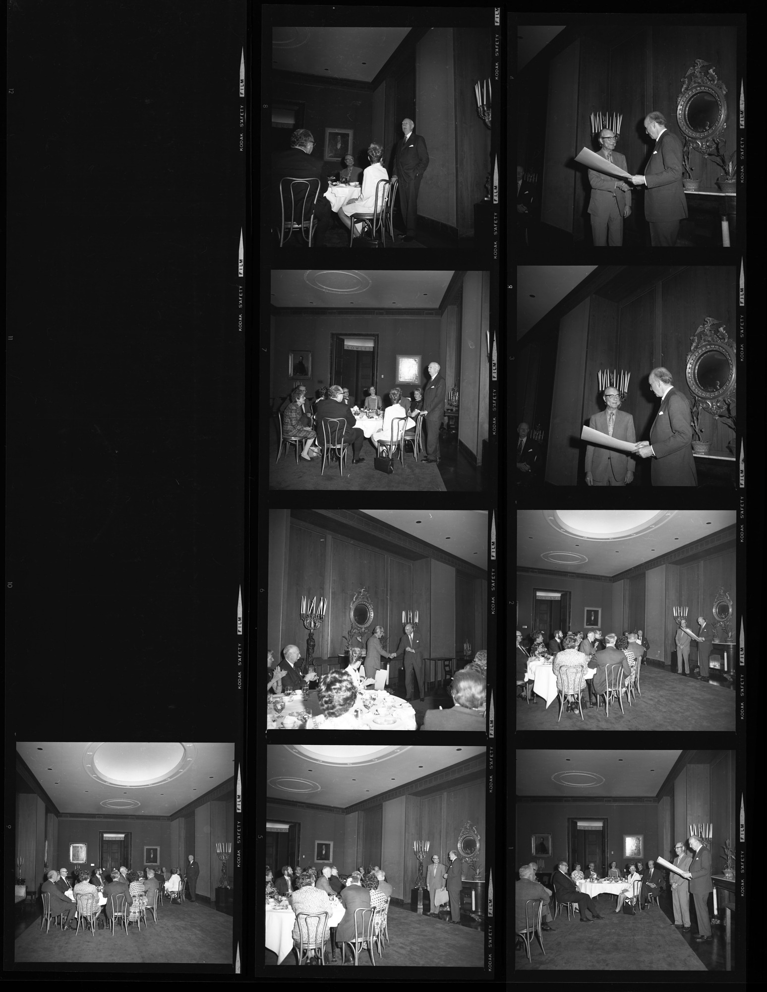 Luncheon and presentation from Secretary S. Dillon Ripley to Dr. Fred Lawrence Whipple, Director of the Smithsonian Astrophysical Observatory, in honor of his Career Service Award from the National Civil Service League. The luncheon was held at the National Museum of History and Technology (NMHT), now known as the National Museum of American History, with former Secretary Leonard Carmichael, Mary Livingston Ripley, and NMHT Director Daniel J. Boorstin also in attendance.