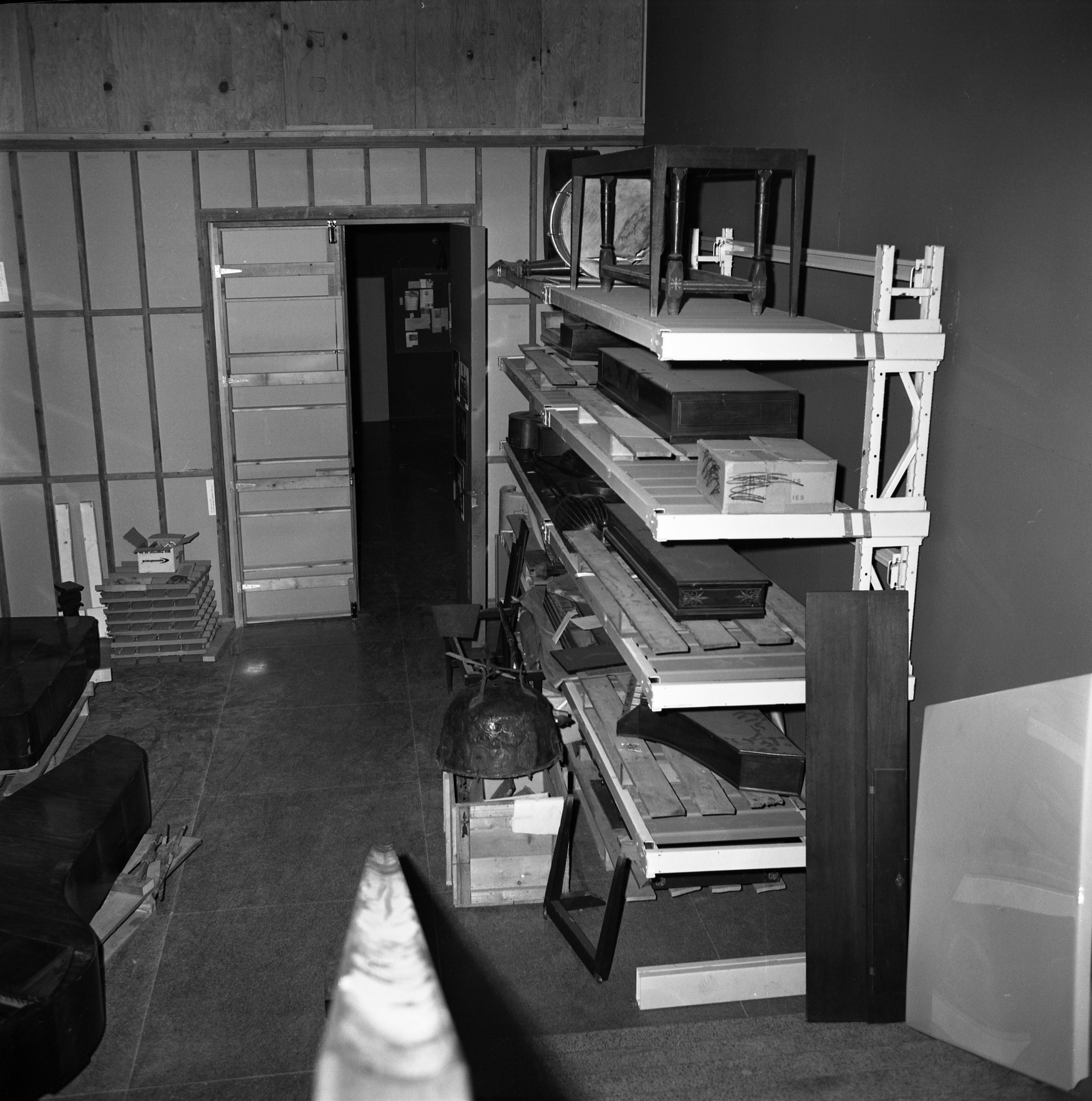 Storage area for the Division of Musical History in the basement of the National Museum of History and Technology, now known as the National Museum of American History.