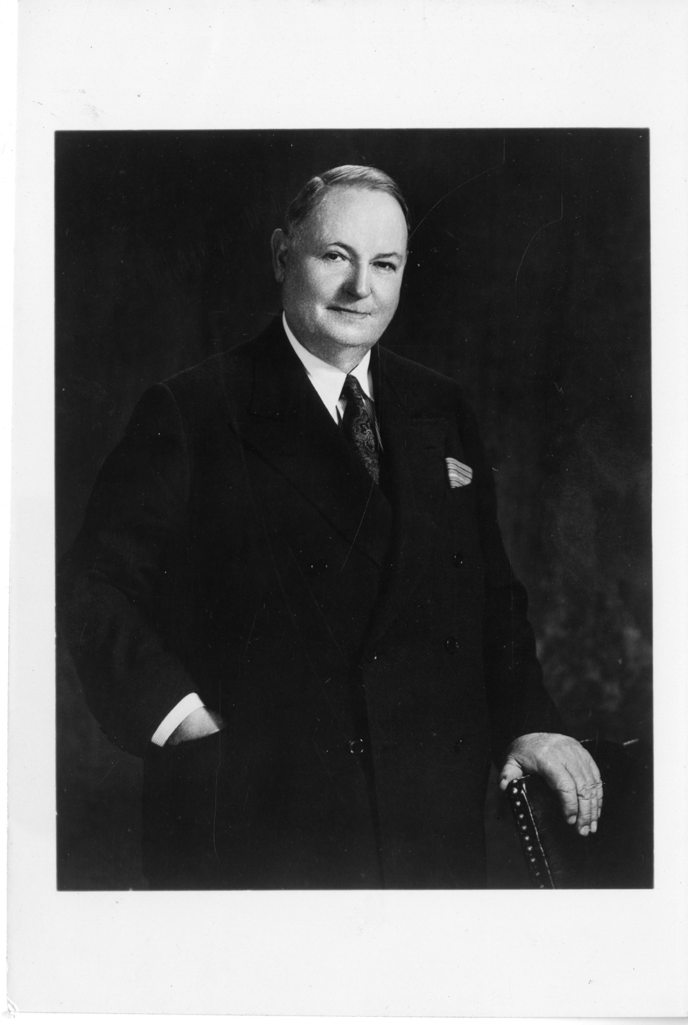 William Jay Hale (1876-1955), Director of Organic Chemistry Research, Dow Chemical Company, 1919-1934, and Professor of Chemurgy, Connecticut College, 1936-1939. This photograph was distributed in connection with publication of his book "Farmer Victorious: Money, Mart, And Mother Earth" (1949). Hale is credited with coining the term "chemurgy" to apply to human-initiated chemistry or, in his words, the "direction of nature's life agencies to the production of chemicals for industry."