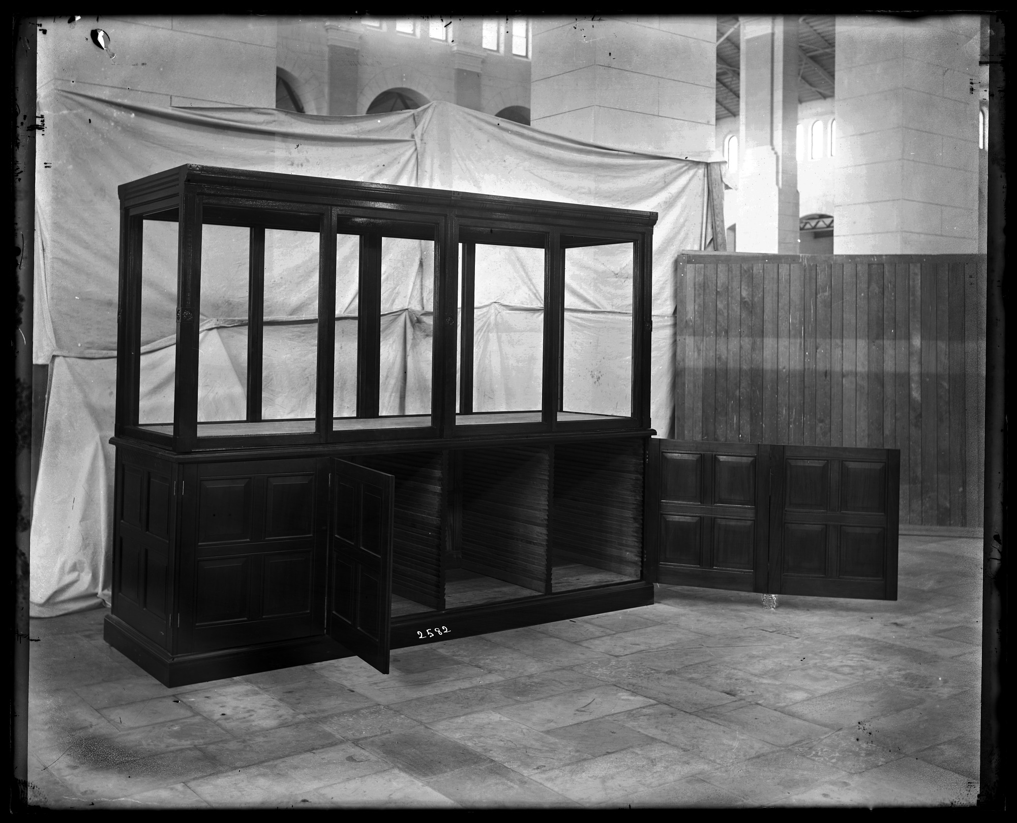 Empty exhibit case in the United States National Museum, now known as the Arts and Industries Building.